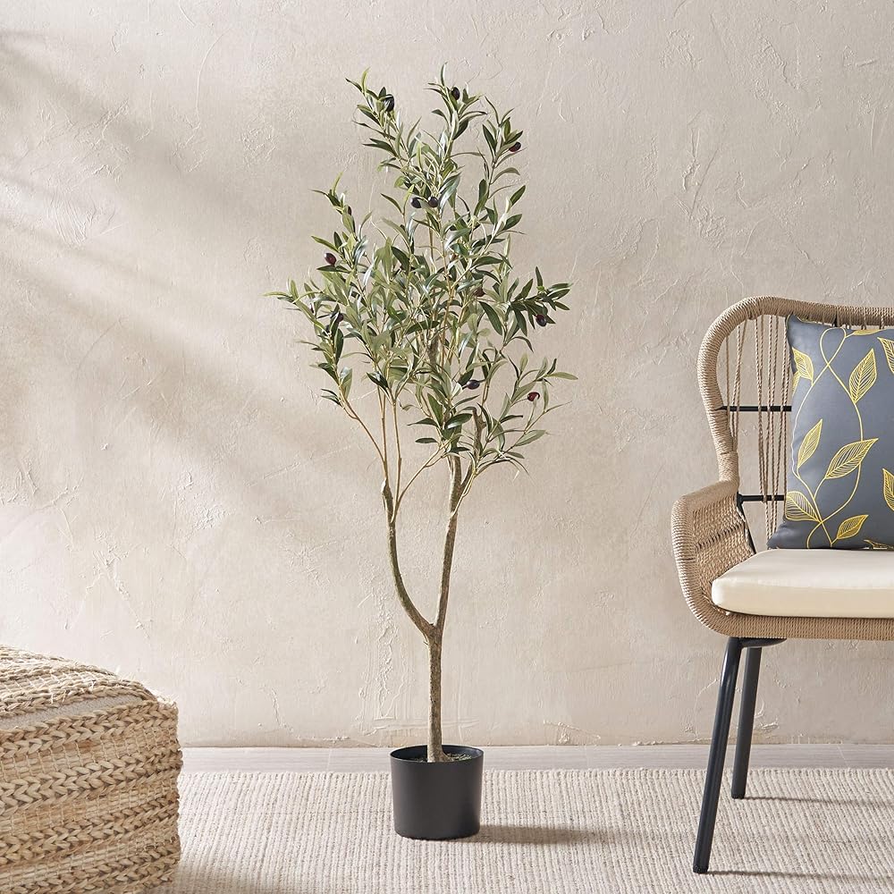 • شجرة الزيتون: تتميز بأوراق مستطيلة فضية خضراء وأغصان رفيعة وزيتون أرجواني داكن، فإن نباتنا الاصطناعي يلتقط شكل وملمس شجرة زيتون جميلة. ويقال إن هذه الشجرة دائمة الخضرة ترمز إلى السلام والصداقة.