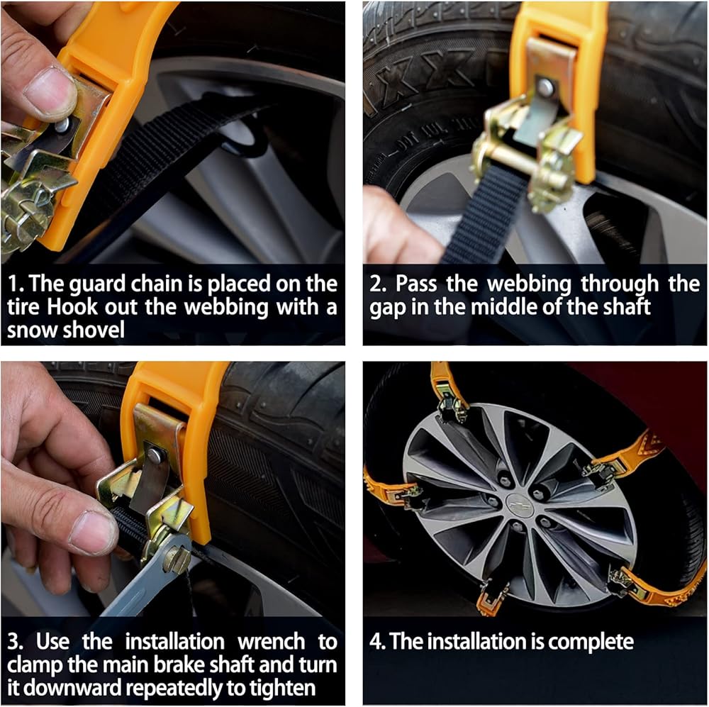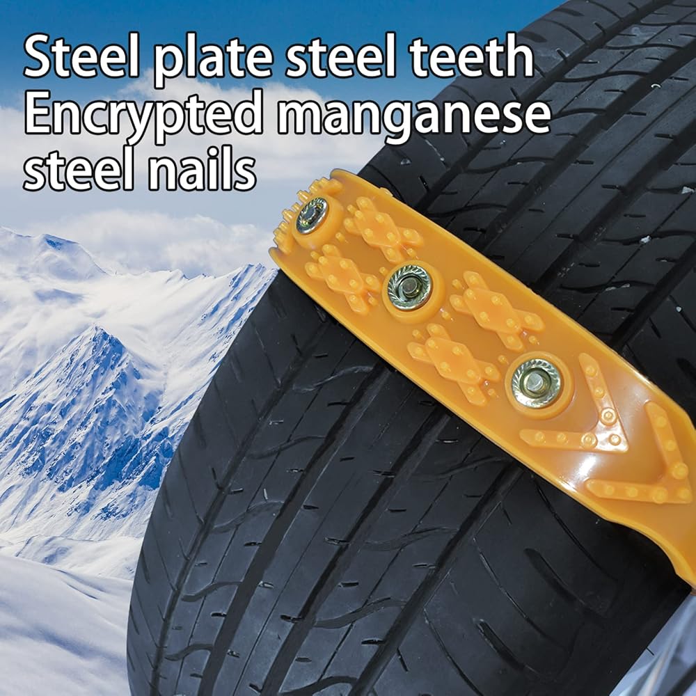 تصميم إنساني: لا يمكن لسلسلة الثلج أن تنزلق أو تكسر الجليد أو تخرج من المستنقع أو الإنقاذ على الطريق فقط. سلسلة الثلج مثبتة بشكل وثيق مع الإطار، ولا تترك أي فجوات، وامتصاص الصدمات وتقليل الضوضاء، كما تضمن سلامة القيادة، مما يوفر لك تجربة قيادة جيدة