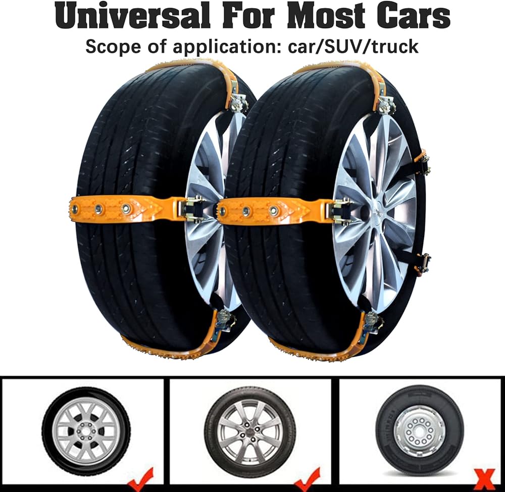 عالمية: يمكن استخدام سلسلة ثلج السيارة المطورة هذه في جميع الفصول، جميع الموديلات بعرض إطار 6.5-10.8 بوصة (165 مم - 265 مم)، مادة السبائك مثبتة بقفل، ومقاومة التآكل قوية. الأشرطة القابلة للتعديل تناسب بشكل مريح أي إطار في معظم السيارات أو سيارات الدفع الرباعي أو الشاحنات الخفيفة. (يلزم وجود 5 سلاسل ثلجية لكل إطار) يوصى بشراء مجموعتين من سيارات الدفع الرباعي