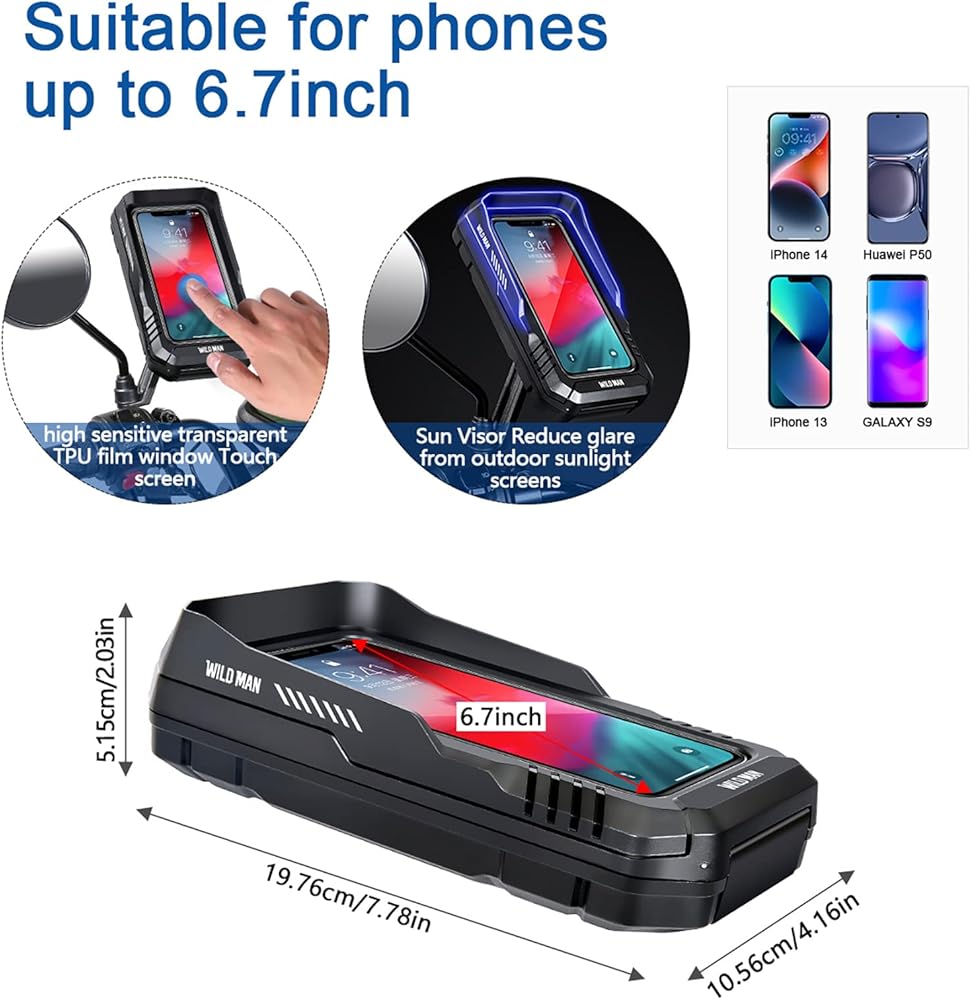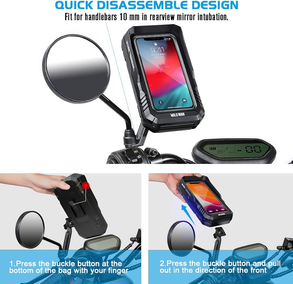 ➤ شاشة تعمل باللمس، يتيح لك حامل هاتف الدراجة المقاوم للماء هذا مع نافذة غشاء عالية الحساسية عالية الدقة الوصول إلى شاشة الهاتف بالكامل دون إزالة الهاتف الذكي. دوران 360 درجة، يمكنك ضبط زاوية حامل هاتف الدراجة بحرية.