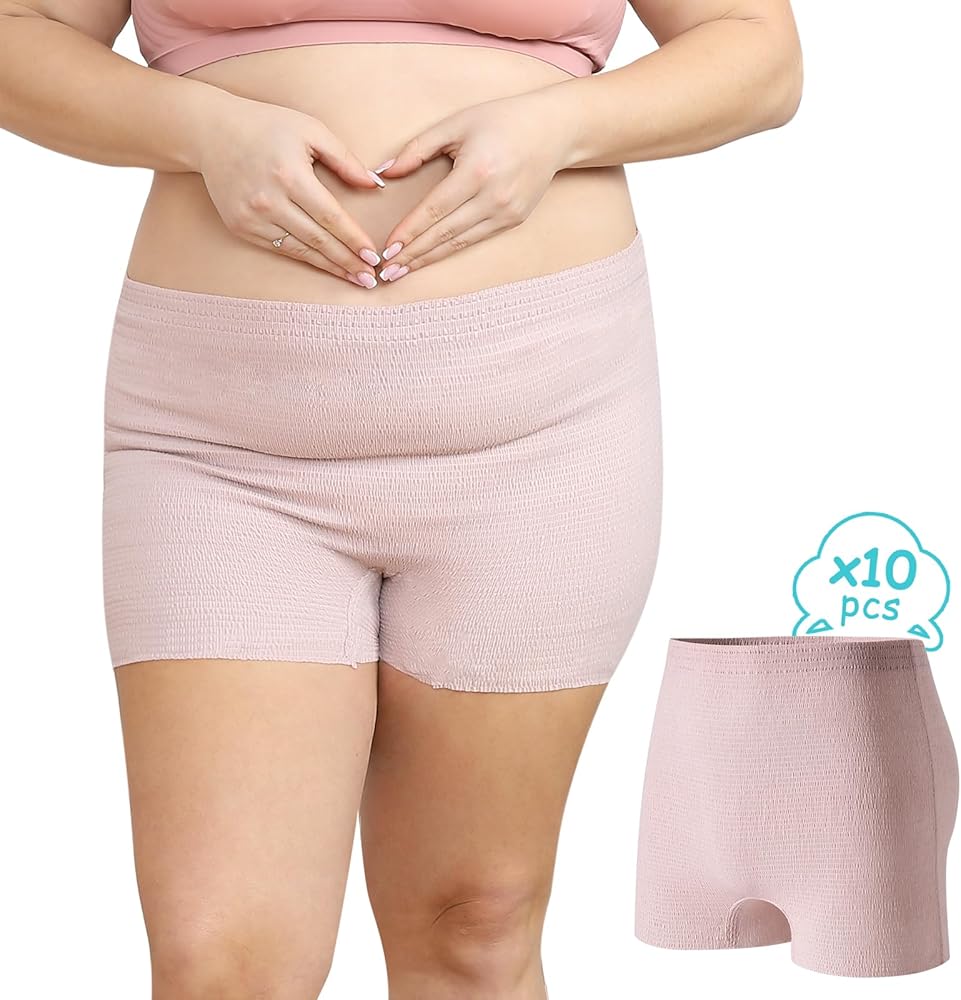 10 قطع ملابس داخلية للاستعمال مرة واحدة بتدفق الهواء بعد الولادة، ملابس داخلية على شكل حرف C للنساء، أساسيات التعافي بعد الولادة، فائقة التهوية وناعمة، خصر مرتفع، قابلة للتمدد لتغطية كاملة، خالية من اللاتكس