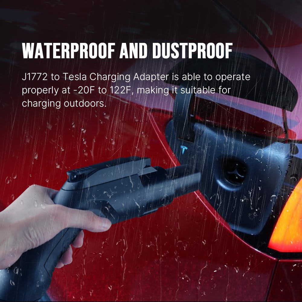 [شحن سريع] تم تصنيف محول MOREC J1772 إلى Tesla عند 80 أمبير كحد أقصى و240 فولت كحد أقصى. يمكن أن تكون قادرة على العمل بشكل صحيح في -20F إلى 122F.