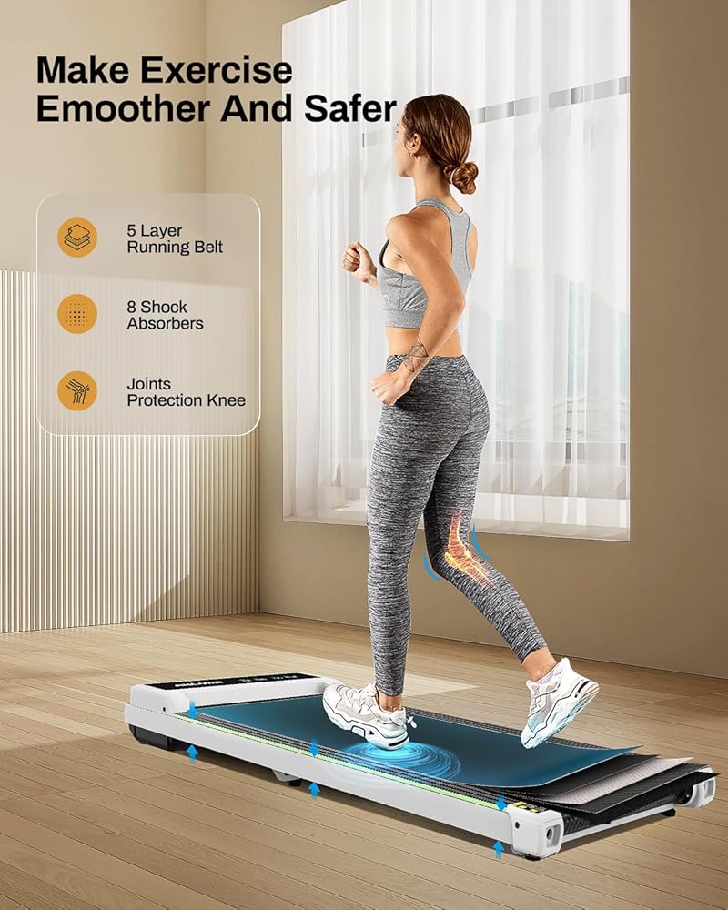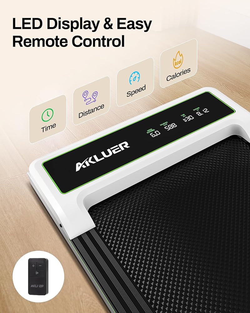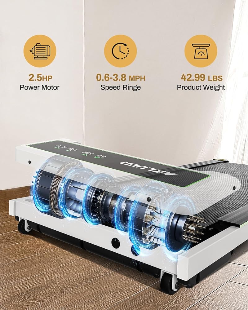 مجهزة بمحرك عالي الطاقة بقوة 2.25 حصان: جهاز المشي Akluer تحت المكتب مجهز بمحرك قوي بقوة 2.25 حصان بسعة وزن تصل إلى 265 رطلاً. يبلغ وزن جهاز المشي المحمول 43 رطلاً فقط، ويمكن تعديل سرعة جهاز المشي المحمول من 0.6 إلى 3.8 ميل في الساعة، مما يسمح بوضعي المشي والركض.