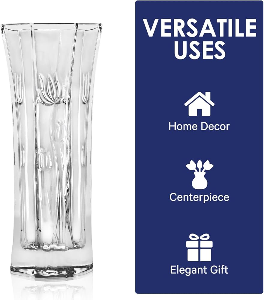 • التصميم والشكل: هذه المزهرية بطول 12 بوصة ذات تصميم أنيق. منقوشة بتصميم معين رائع ورائع؛ تحتفل حقًا بالالتزام والحب الأبدي. إنتاج الزجاج الكريستالي، المزهرية أكثر وضوحًا من المزهرية العامة، خاصة في عكس الضوء، ستكون المزهرية مشرق للغاية.لا توجد زوايا حادة أو فقاعات أو تجاعيد على الزجاج، آمن وجميل.سهل الغسل ومقاوم للصدمات.