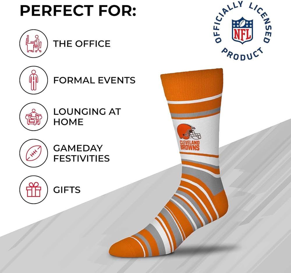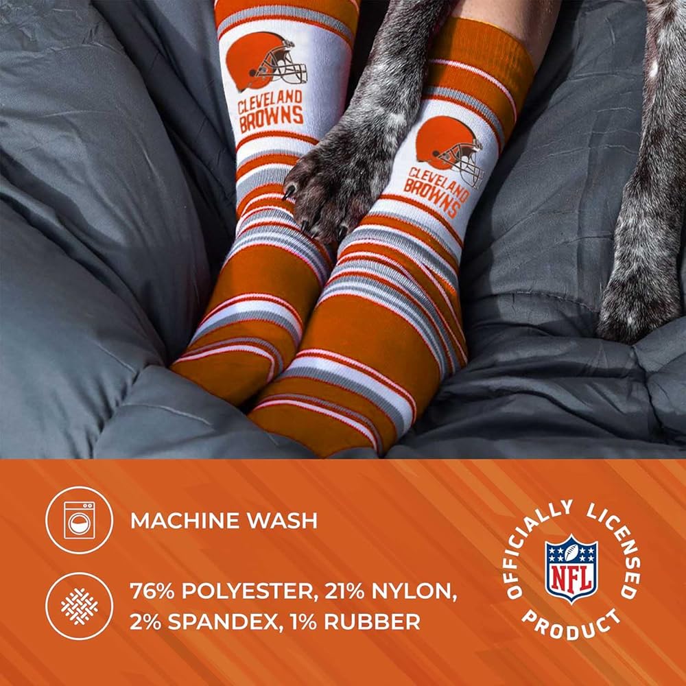 • جوارب نيو إنجلاند باتريوتس للرجال والنساء بنمط مخطط وشعار الفريق منسوجة من مزيج من الأكريليك والألياف اللدنة، الجوارب قابلة للتمدد ورائعة للارتداء مع أي شيء بدءًا من البيجامات إلى فستان نيو إنجلاند باتريوتس للنساء