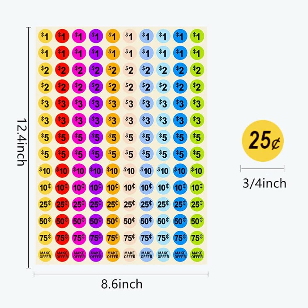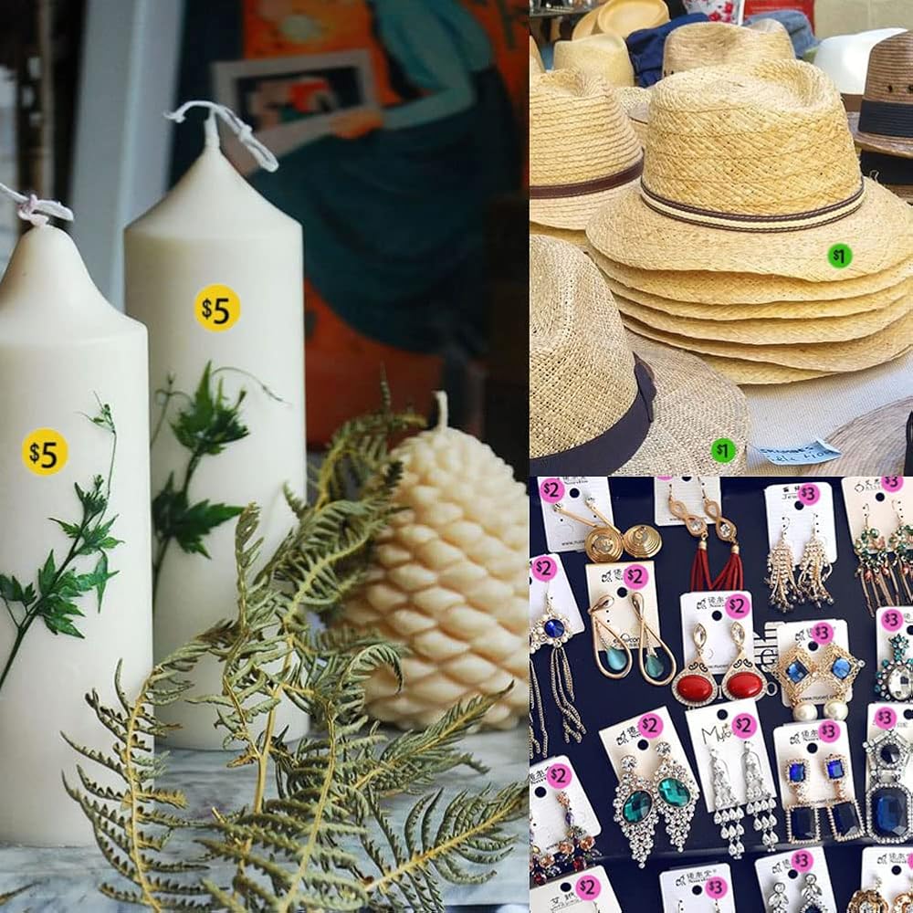 🍀سهلة الاستخدام: ملصقات الأسعار هذه رائعة على الملابس والأكياس البلاستيكية والأوراق ومعظم الأسطح. استخدم ملصقات وملصقات الأسعار هذه لبيع المرآب التالي. مثالية لمبيعات المخبوزات، وأسواق السلع المستعملة، ومبيعات العلامات، ومبيعات الفناء، ومبيعات العقارات.