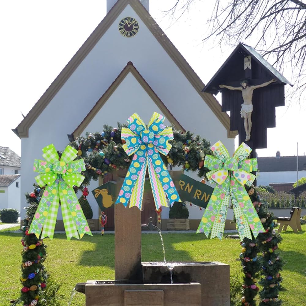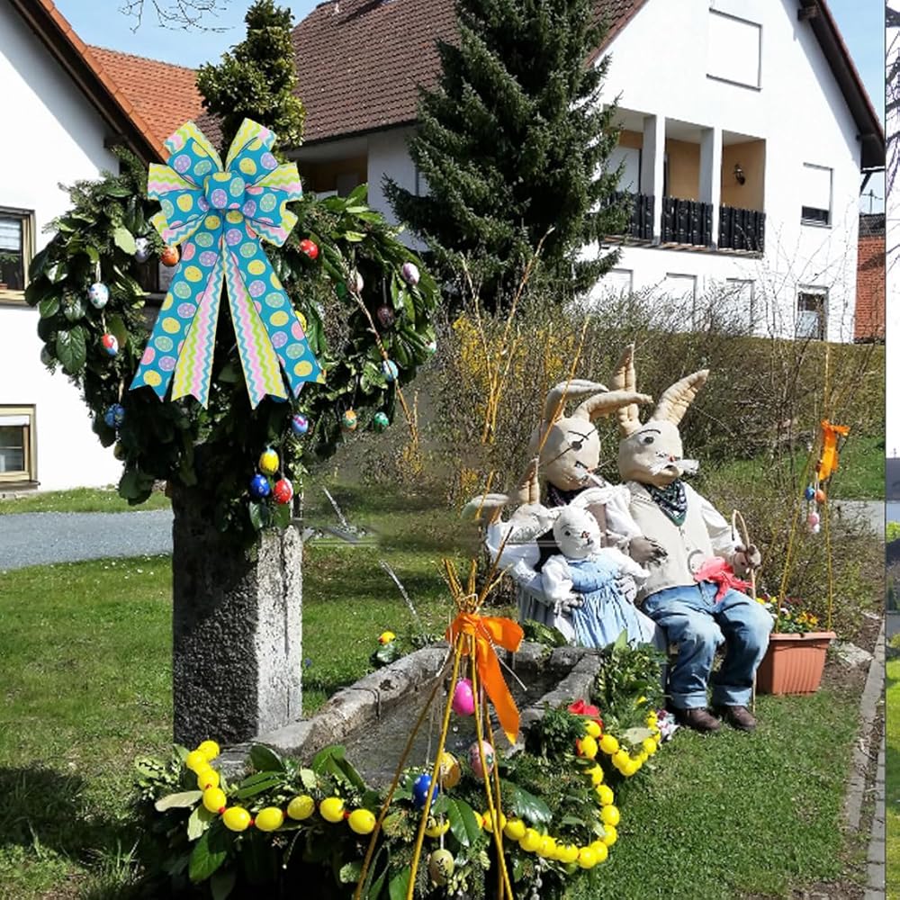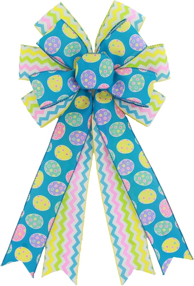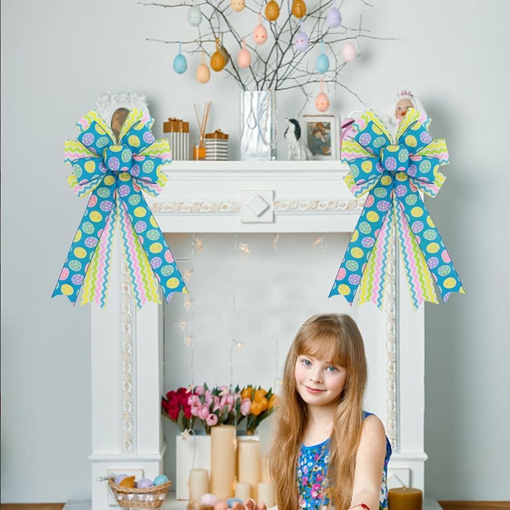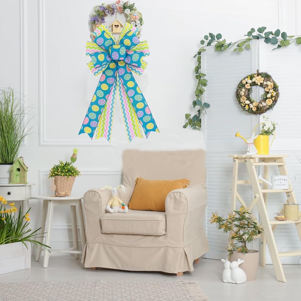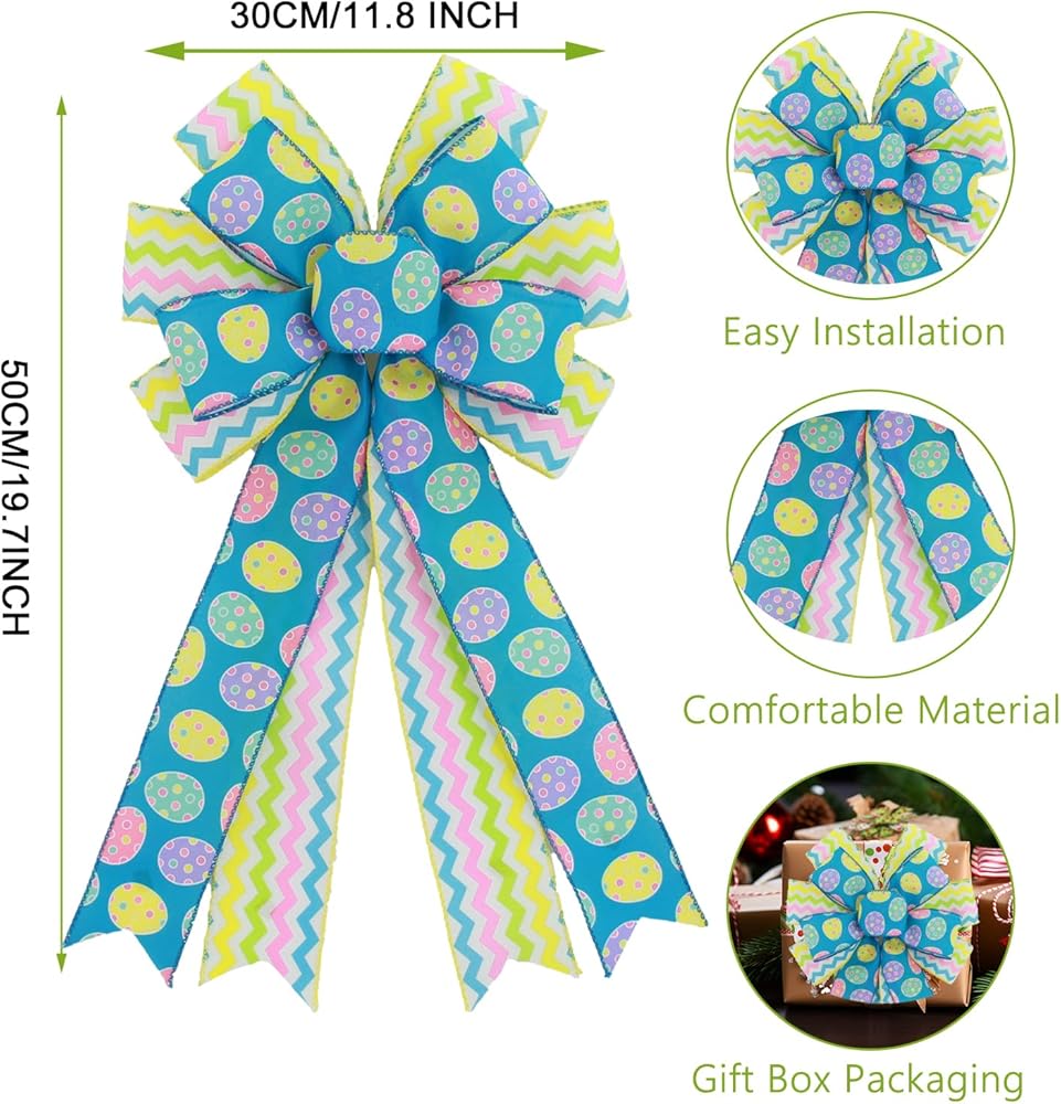 كبير عيد الفصح أقواس إكليل الأقواس، 11 × 19.7 بوصة الربيع عيد الفصح البيض السلكية الشريط الأقواس لإكليل القوس الديكور الباب الأمامي داخلي في الهواء الطلق الربيع الديكور