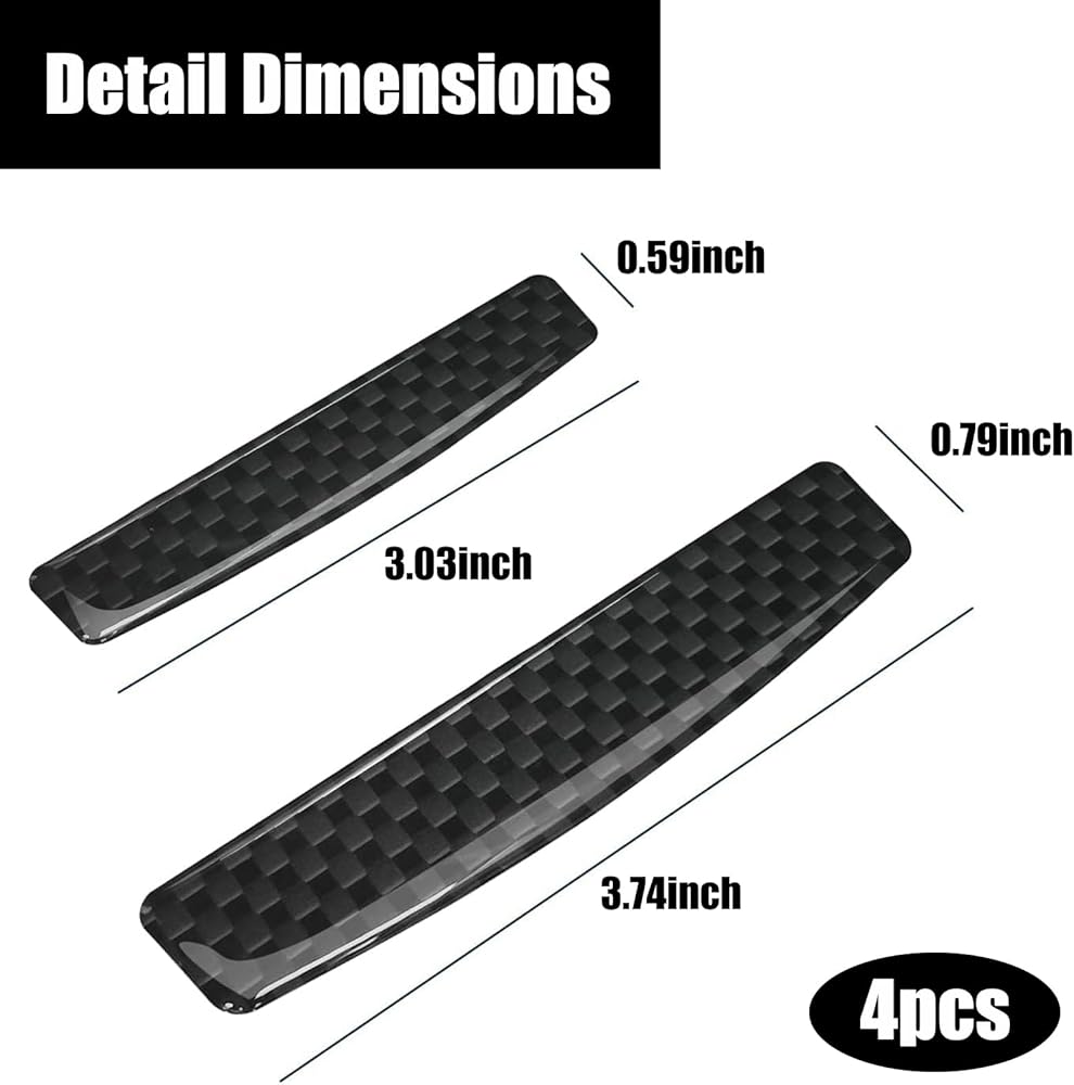 تفاصيل العبوة: سوف تحصل على شريطين من ألياف الكربون مقاس 3.81 بوصة × 0.78 بوصة لعتبات الأبواب الأمامية، وشريطين لعتبات الأبواب الخلفية من ألياف الكربون مقاس 3.03 بوصة × 0.59 بوصة.