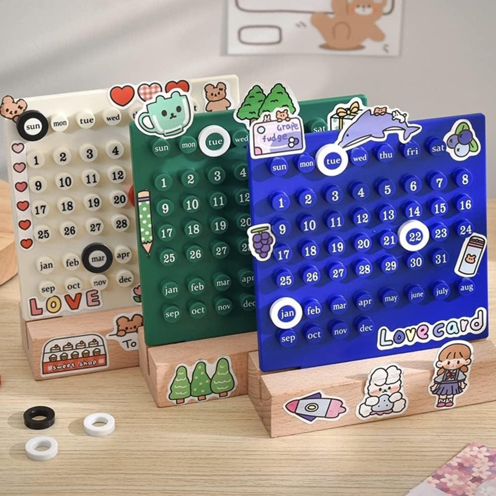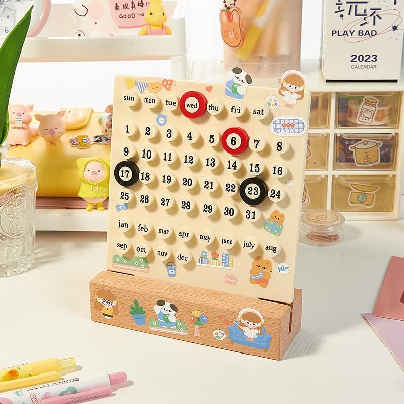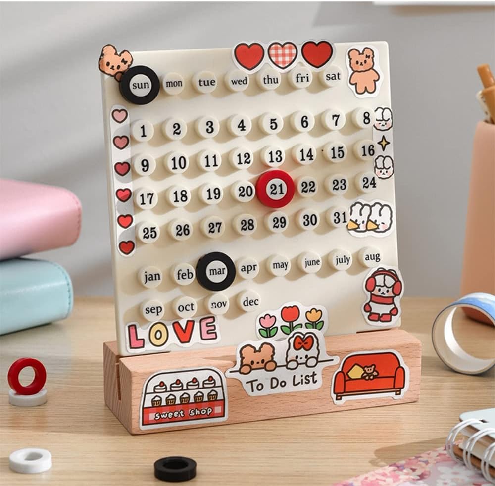 تقويم مكتب خشبي - تقويم مخطط دائم - هدايا فريدة، عرض تاريخ الشهر، ديكورات مكتب للمكتب، ملحقات مكتبية جمالية، ديكور مكتب لطيف (أبيض كريمي)