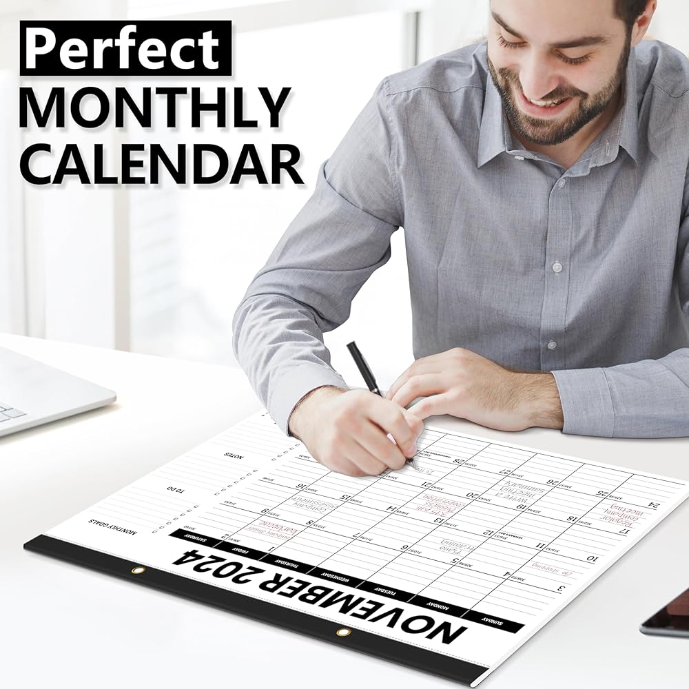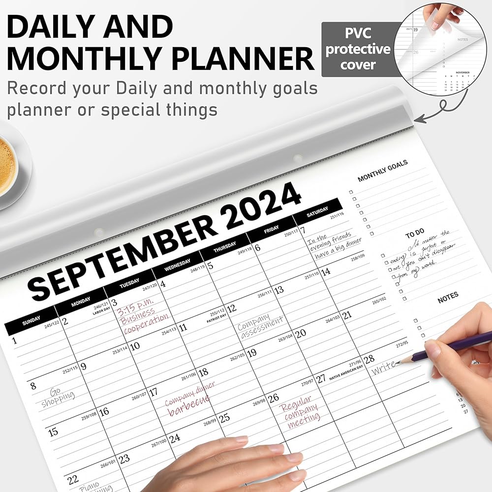 تقويم مكتب Jyusmile 2024، 17 بوصة × 12 بوصة تقويم سطح المكتب كبير 2024-2025، 18 تقويم مكتب/جدار شهري، مخطط التقويمات ومنظم مع PVC، تقويم وسادة مكتب قابل للتمزيق للمنزل أو المدرسة أو المكتب