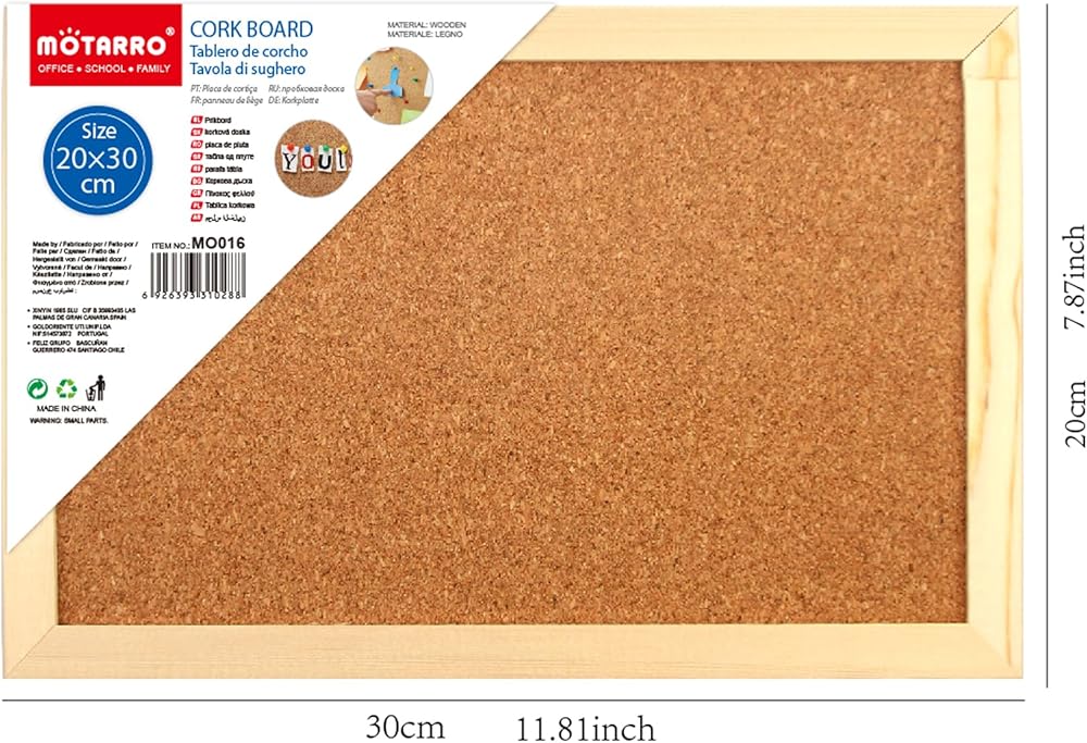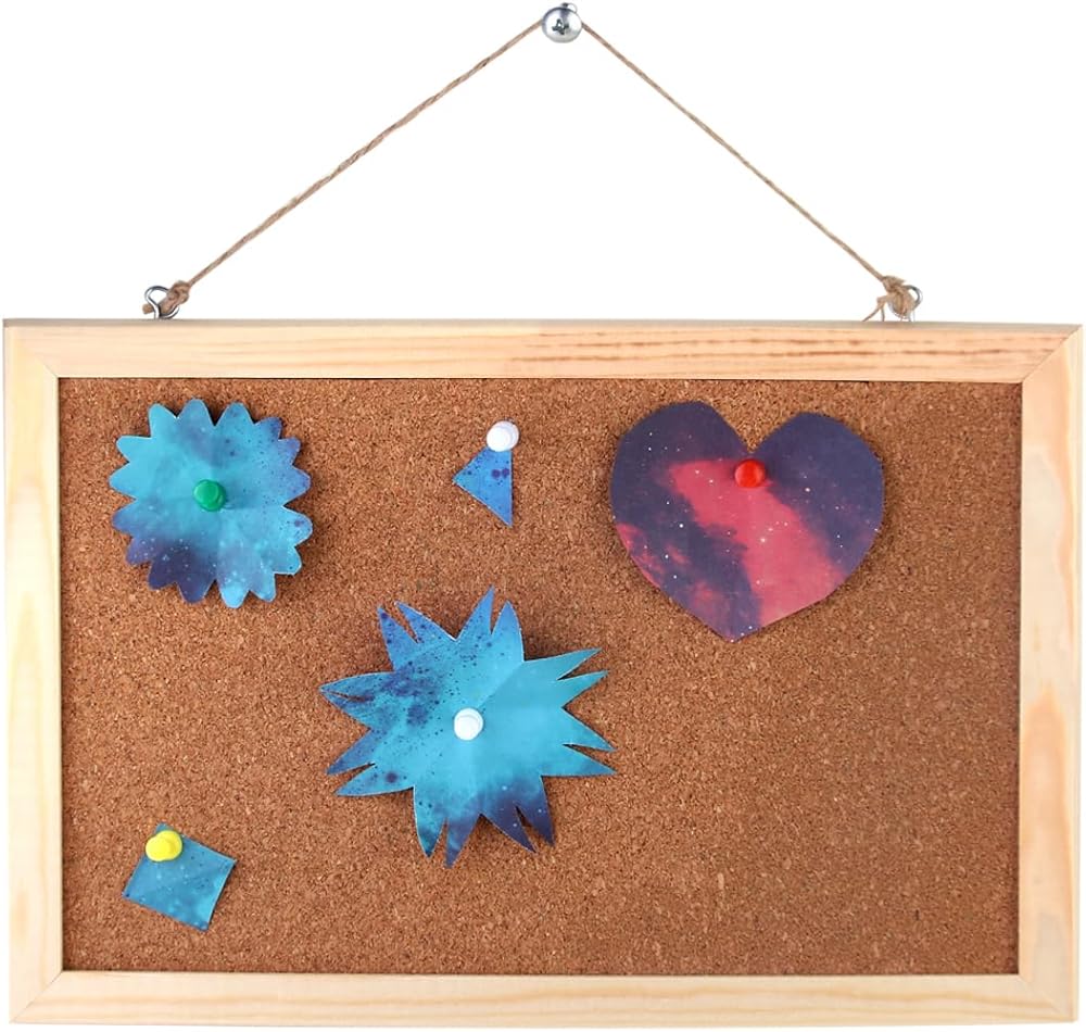 تشمل العبوة: 1 × لوحة إعلانات بإطار خشبي، 1 × مجموعة تركيب (5 دبابيس دفع بألوان متنوعة مرفقة).