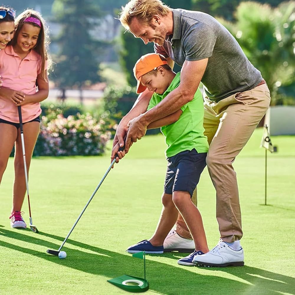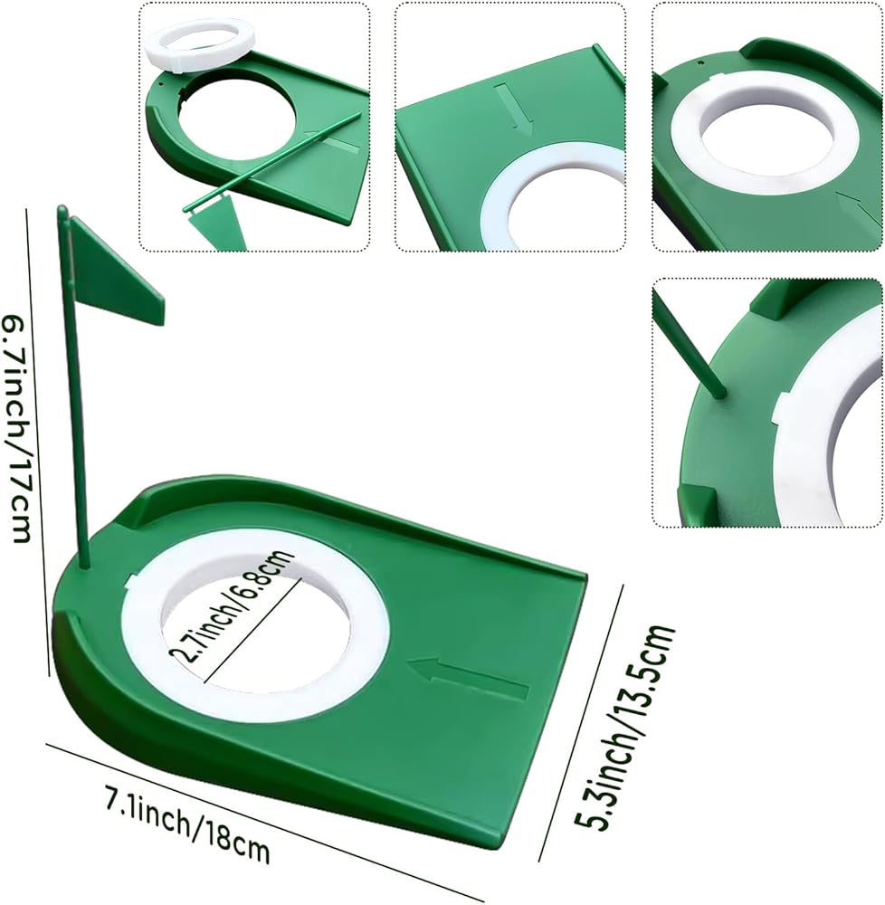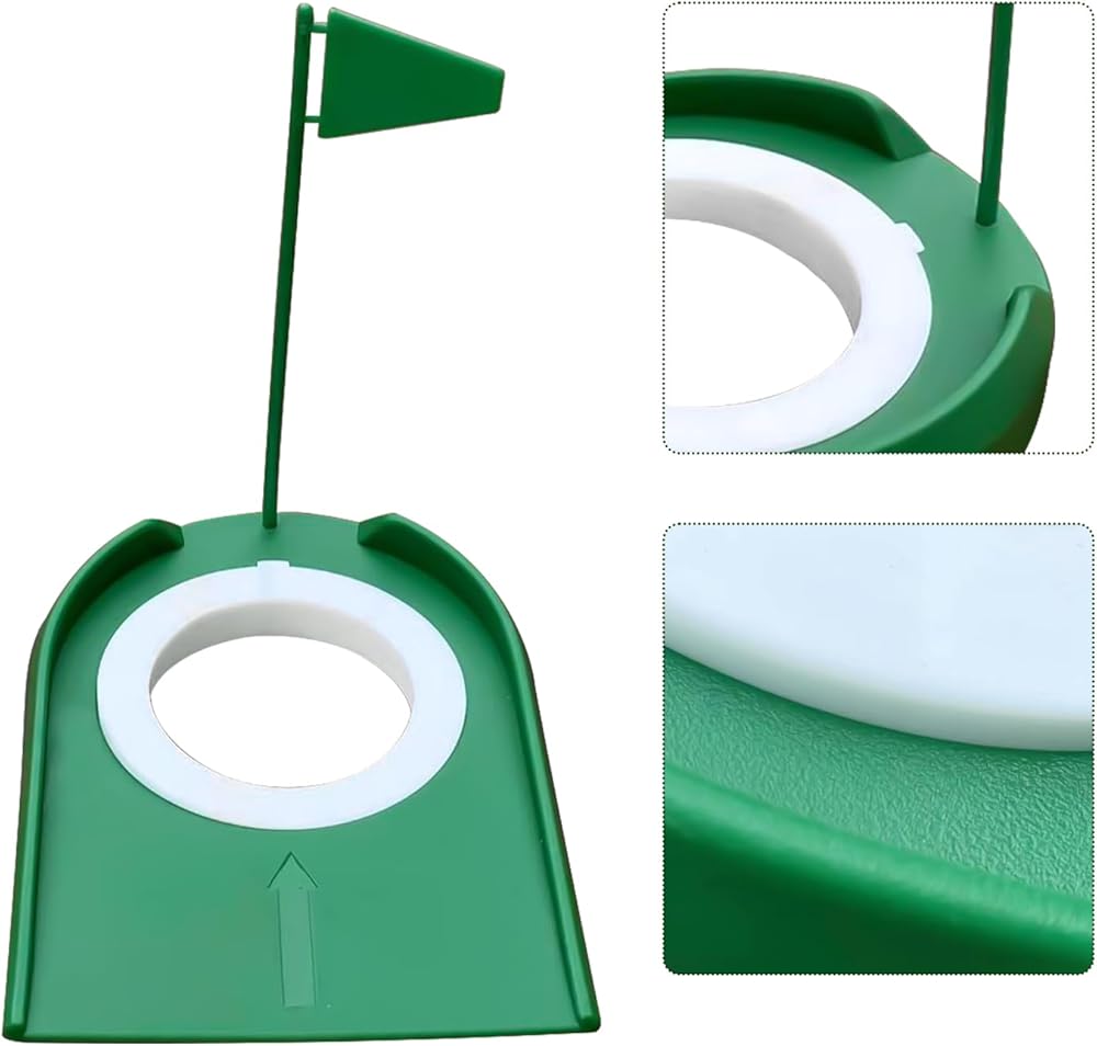 كوب جولف بلاستيكي داخلي وخارجي، كوب تنظيم مضرب الجولف، كوب تدريب على وضع ثقب الجولف، مع فتحة قابلة للتعديل، علم أخضر