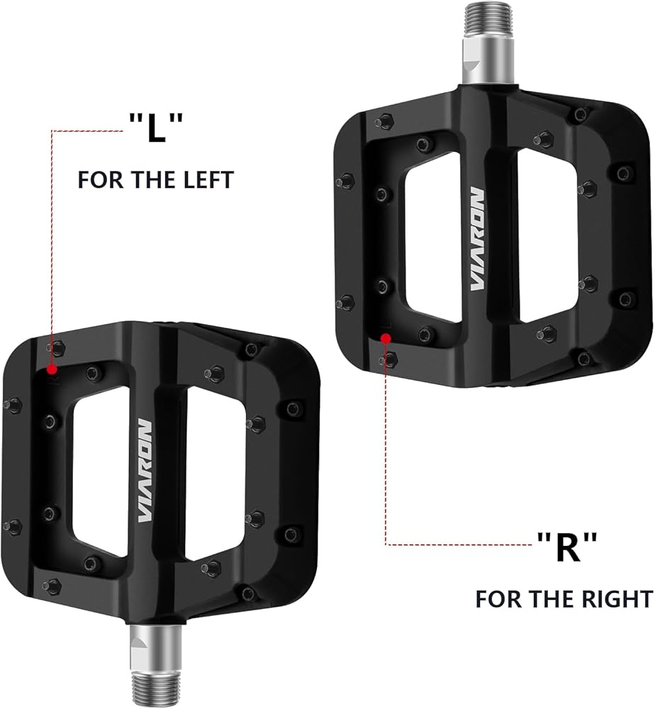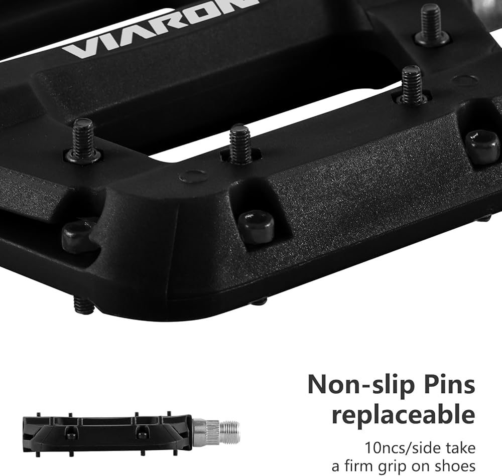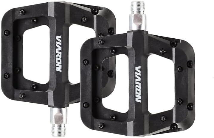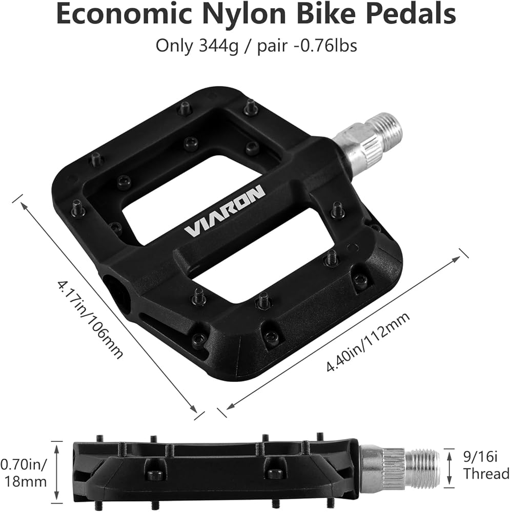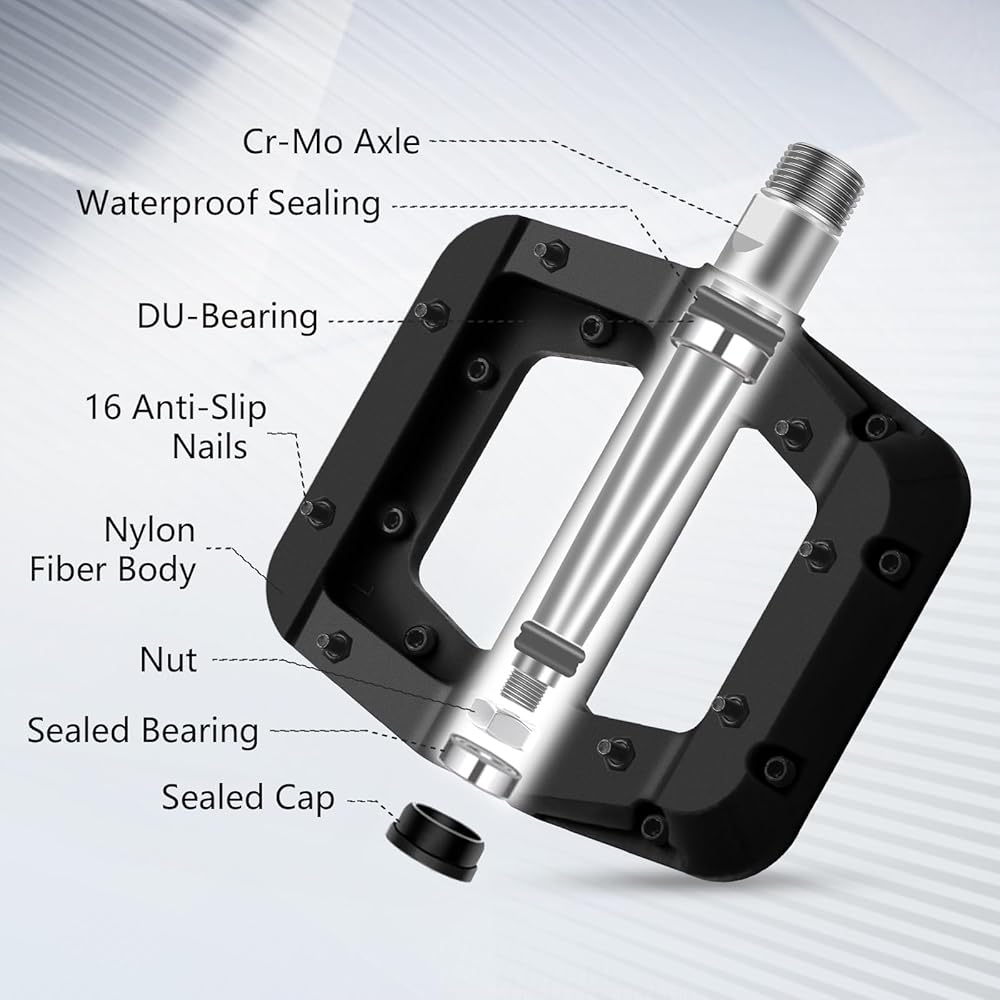 مقابض مضادة للانزلاق ورائعة: 16 مسمارًا مضادًا للانزلاق على كل جانب مما يزيد من الاحتكاك سيوفر رحلة آمنة في الأيام الممطرة والطرق الوعرة. حتى لو كانت دواسات النايلون مغطاة بطبقة سميكة من الطين بعد رحلة موحلة، فلا تقلق أبدًا من انزلاق قدميك عن الدواسات!