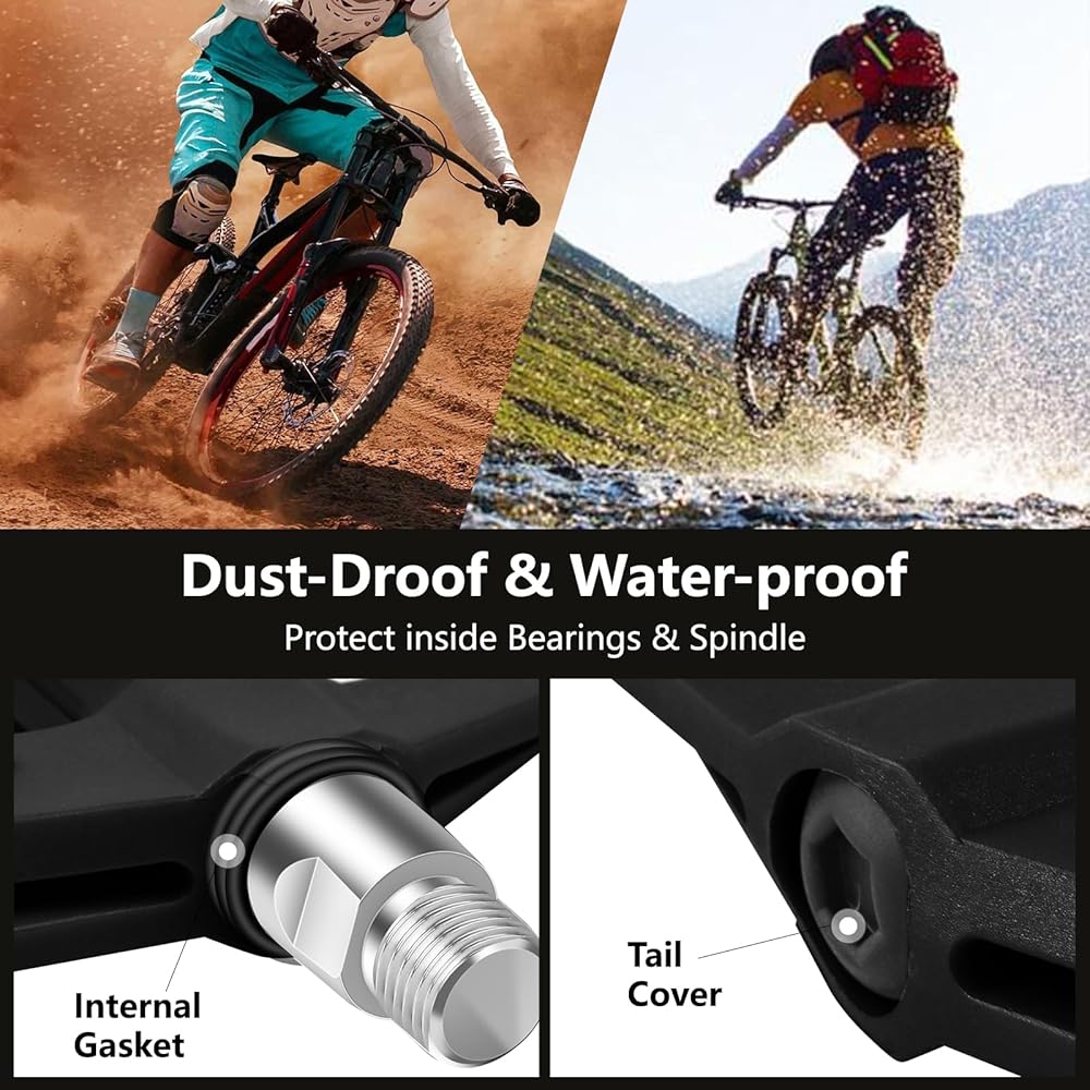 تحمل مختوم: دواسات الدراجة محكمة الغلق تحمي المغزل من الماء والغبار، كما تحافظ على دوران الدواسات بسلاسة وبدون ضوضاء، حتى لو كانت مغطاة بطبقة سميكة من الطين بعد رحلة موحلة. فقط استمتع بركوب الدراجات في المطر أو التسلق.