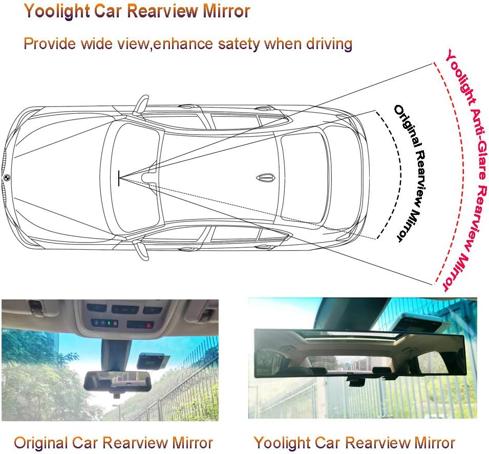 Yoolight Car rearview mirror can provide more wide angle vision than original mirror , do not have trouble seeing the panoramic of the car and minimize your blind spot