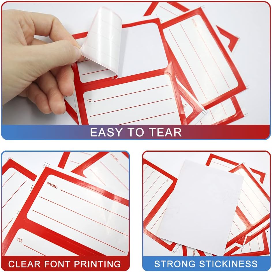 【عملية وسهلة】 يمكن كتابة ملصقات الملصقات البريدية لوضع علامة على العبوات بسهولة. اعتماد الألوان البيضاء والحمراء، لافتة للنظر وسخية. تصميم الزاوية المستديرة سهل التقشير.