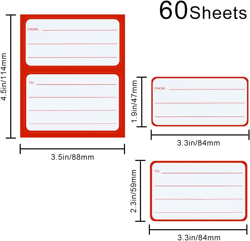 【كميات كافية】 تتضمن العبوة 60 قطعة من ملصقات عنوان البريد من/إلى، بما يكفي لتلبية احتياجاتك اليومية في العمل والحياة، ويمكنك مشاركتها مع أصدقائك وعائلتك.