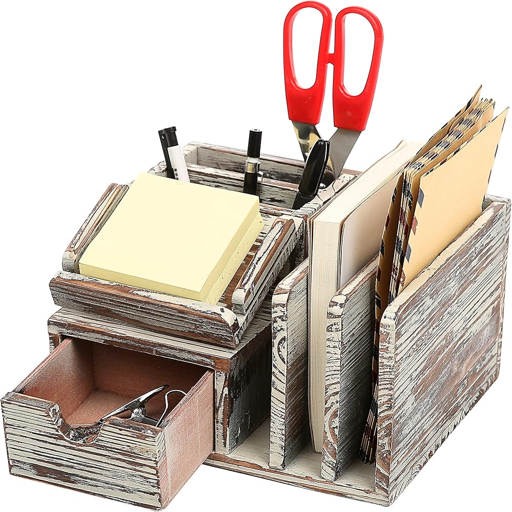 سعة تخزين كبيرة: يتميز منظم سطح المكتب بفتحات جانبية واسعة لتخزين البريد والحروف والفواتير والقرطاسية وغيرها من مستلزمات المكتب؛ حامل قلم رصاص وقلم وحامل ملاحظات لاصقة ودرج قابل للسحب لتخزين العناصر الإضافية مثل الأقلام وأقلام الرصاص ودفاتر الملاحظات والمزيد