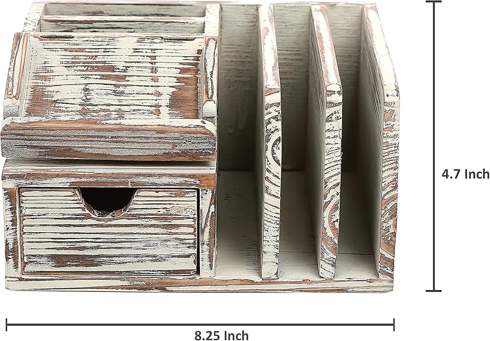 فارز البريد: يتميز منظم سطح المكتب بفارز بريد مع مقصورات لفرز الرسائل والبطاقات البريدية والأظرف؛ يحافظ على مكتبك مرتبًا ومنظمًا