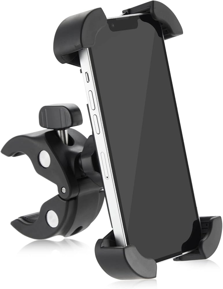 • Bike Phone Holder: This bike phone holder securely holds any phone with phone sizes from 4-7 inches and up to 0.68 inches (17mm) thick