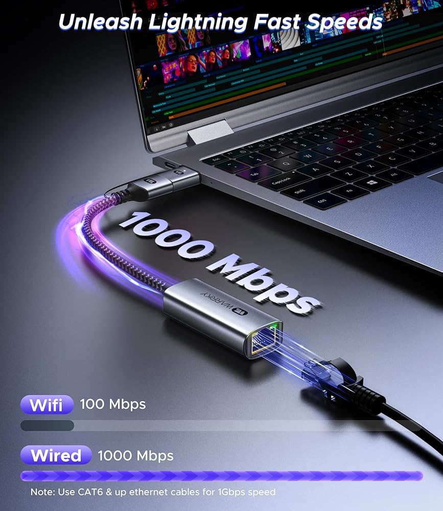[توافق واسع] يعتمد محول WARRKY USB إلى Ethernet شريحة REALTEK RTL8153 الرائدة في الصناعة وهي خالية من برامج التشغيل لنظام التشغيل Windows 11/10/8.1/8، وmacOS، وChrome OS، وLinux، وما إلى ذلك. كما أنها خالية من برامج التشغيل ومتوافقة مع Nintendo Switch و Steam Deck و Mi Box. ما عليك سوى التوصيل والتشغيل للاستمتاع بشبكة سلكية سلسة. (ملاحظة: إنه ليس حلاً لتوصيل أجهزة USB مثل الطابعات ومحركات الأقراص الثابتة بالشبكة. ولا يمكن استخدامه لمشاركة إيثرنت أو WiFi أو بيانات الهاتف المحمول بين أجهزة متعددة)