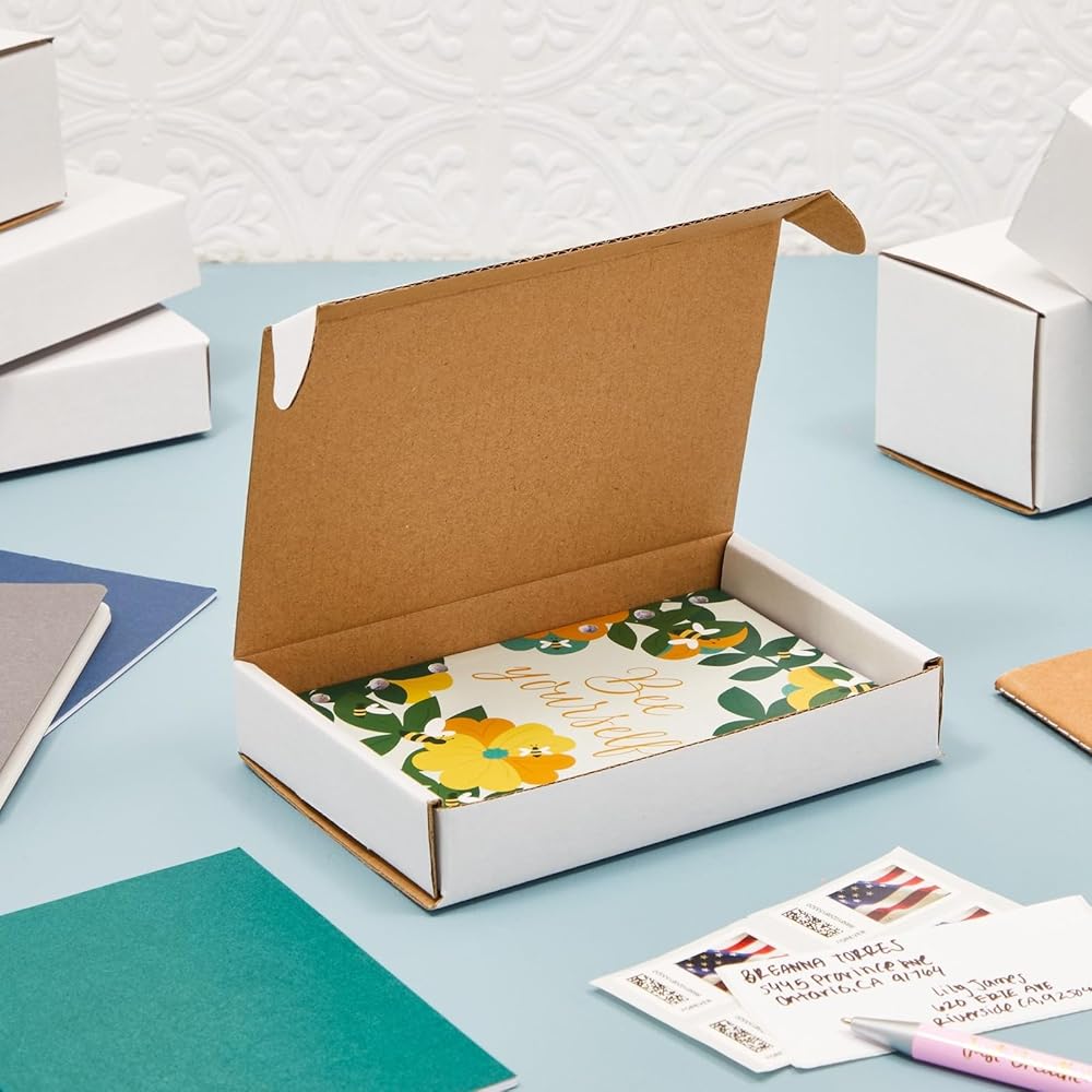 مجموعة كبيرة: تتضمن 50 صندوقًا من الورق المقوى المموج الأبيض لمستلزمات الأعمال الصغيرة لضمان حصولك دائمًا على صندوق متاح عند الحاجة