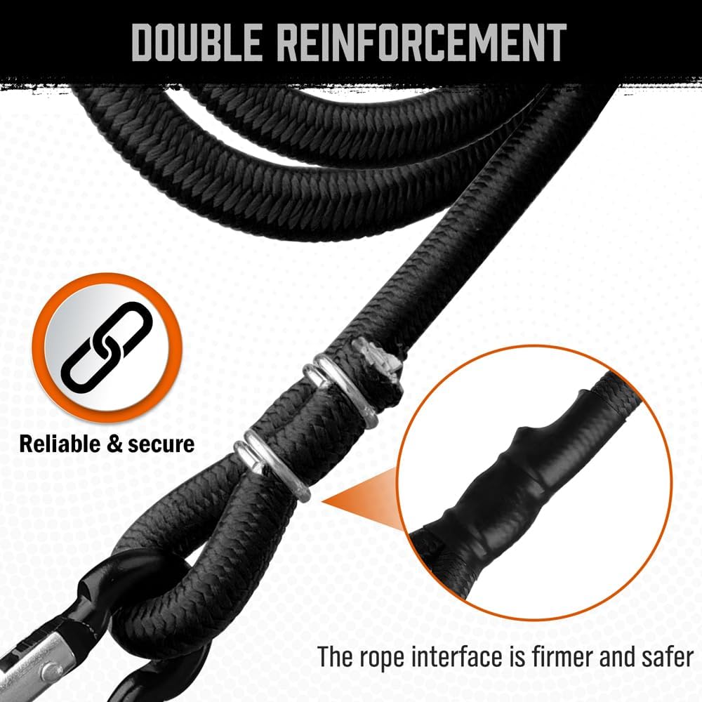 • يمكن قفل حلقات الخطاف الموجودة على طرفي الحبل المطاطي على نقطة التثبيت دون الانحناء أو الكسر أو الانزلاق. آمنة وموثوقة.