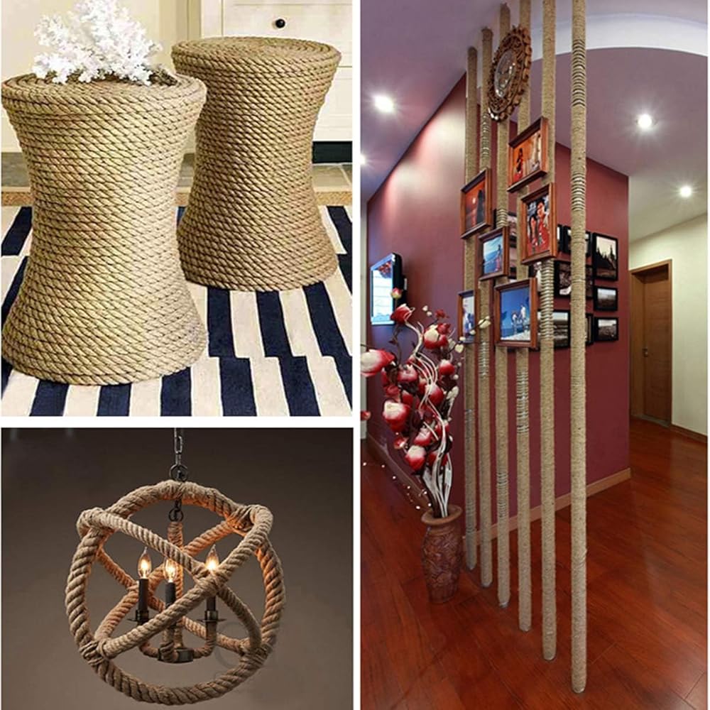 4 twisted jute rope, high-strength, flexible, sturdy hemp ropes that withstand the weight of indoor and outdoor applications