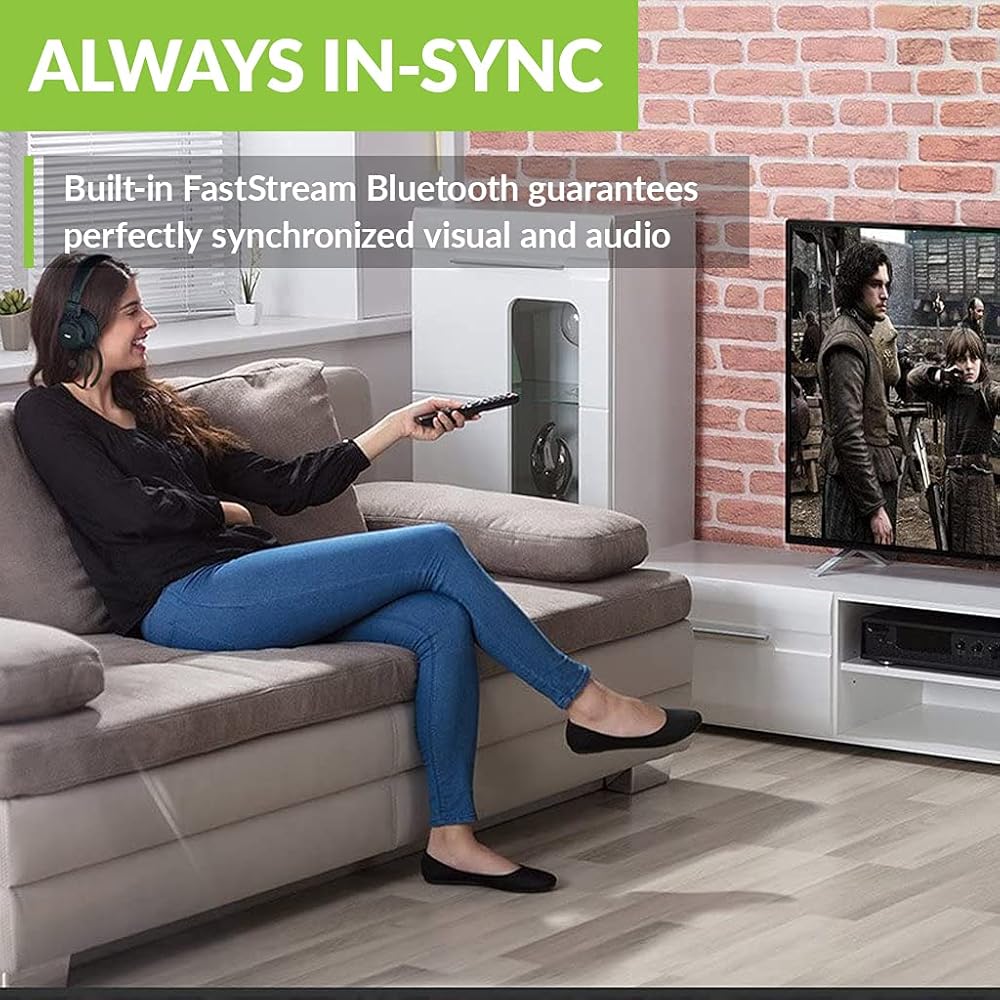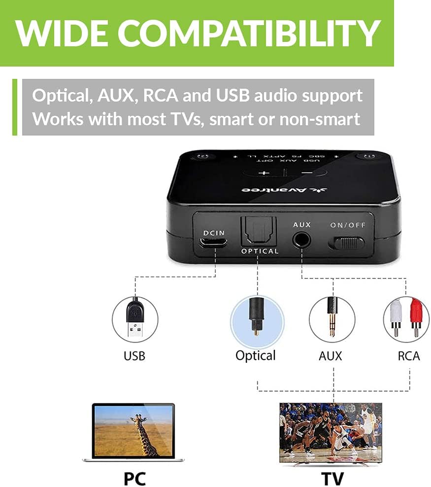 【متوافق عالميًا】 بفضل كابلات الإدخال الضوئية وAUX وRCA من Avantree HT4189، فهي متوافقة عالميًا وتعمل مع جميع أجهزة التلفزيون الموجودة في السوق. باستخدامه، ستتمكن من الاستماع إلى البرامج التليفزيونية/الأفلام المفضلة لديك على مستوى الصوت الخاص بك؛ لن تضطر بعد الآن إلى رفع مستوى صوت مكبر صوت التلفزيون بالكامل وإزعاج عائلتك أو جيرانك.