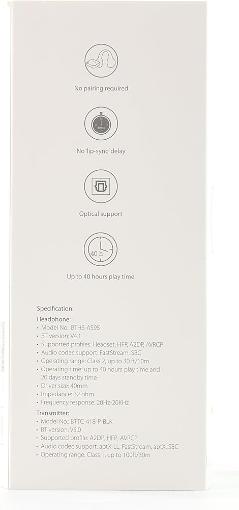【إعداد خالٍ من المتاعب】 ليست هناك حاجة لإجراء عملية الاقتران المعقدة عبر البلوتوث مع سماعة الرأس التليفزيونية اللاسلكية هذه؛ ما عليك سوى توصيل جهاز إرسال HT4189 بمنفذ إخراج الصوت بالتلفزيون لديك، وتشغيل كل شيء، وسوف يتصلان ببعضهما بسرعة، ويجب أن تكون جاهزًا للانطلاق. يعمل ببراعة مع أجهزة التلفاز القديمة غير الذكية أيضًا.