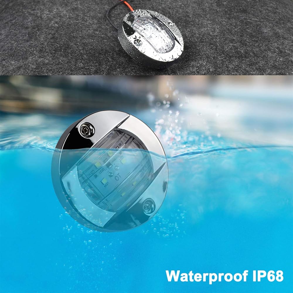 مقاومة للماء: خضعت مصابيح القارب من Boigoo لاختبارات صارمة ضد الغبار والماء وتدعم العمل تحت الماء على المدى الطويل. نحن نستخدم غراء قوي مقاوم للماء على الجزء الخلفي من لوحة الدائرة وداخل الغلاف