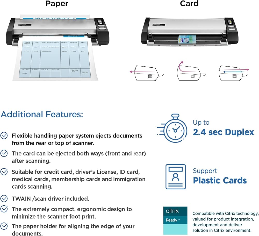 تم تصميم D430 لمسح البطاقات التي يصل سمكها إلى 1.2 مم بما في ذلك بطاقة الائتمان ورخصة القيادة وبطاقة الهوية والبطاقات الطبية وبطاقات العضوية وبطاقات الهجرة