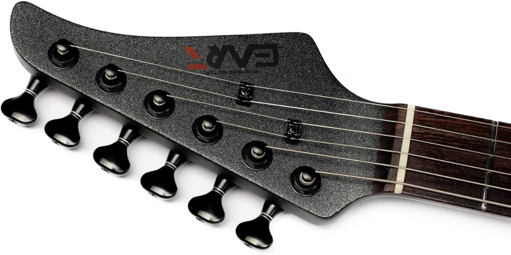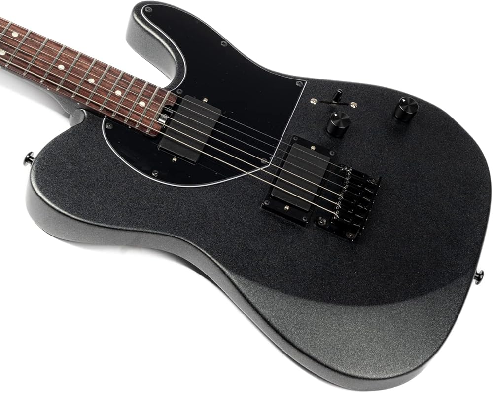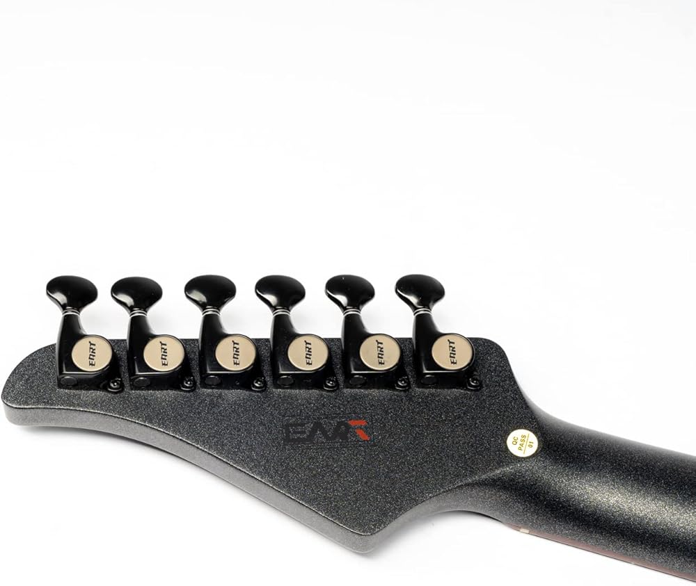 EART TL-281 6 سلسلة جيتار كهربائي صلب الجسم - كامل الحجم رقبة القيقب المحمص نشط هامبوكر جسر ثابت جيتار كهربائي معدني ثقيل للصخور، ميتا الثقيلة، اليد اليمنى، أسود
