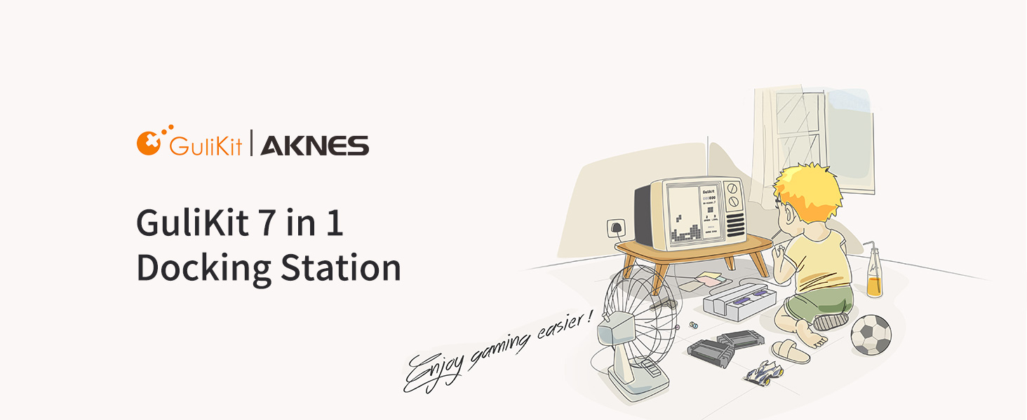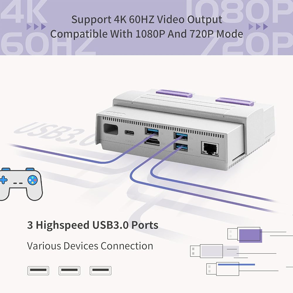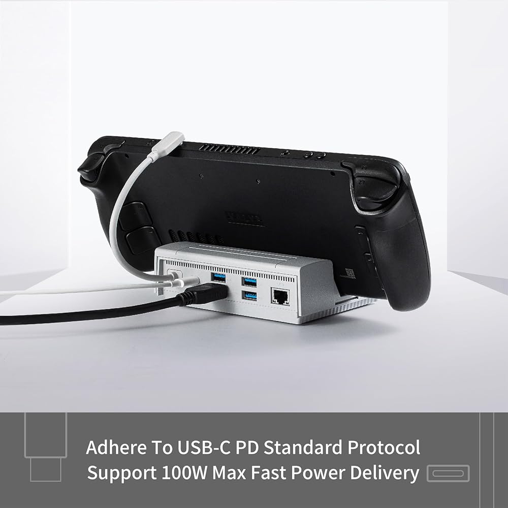 【محطة إرساء 7 في 1】قاعدة شحن مجموعة Guli Steam Deck مجهزة بـ 7 منافذ: HDMI(4K@60 هرتز)، جيجابت إيثرنت (1000 ميجابت في الثانية)، 3 منافذ USB-A 3.0، شحن USB-C PD (100 وات) و منفذ إخراج USB-C.