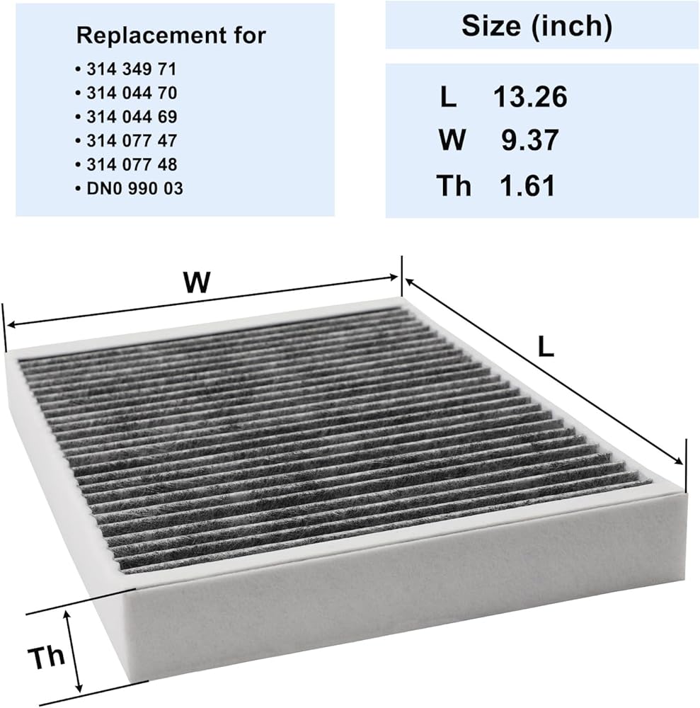 • 【Premium Protection】Made of premium fibre and activated carbon, longer service life and stronger filtering, provide exact fit and perfect tightness to ensure constant filtration performance during the entire service interval as well as optimum vehicle interior ventilation due to the high air flow capacity.