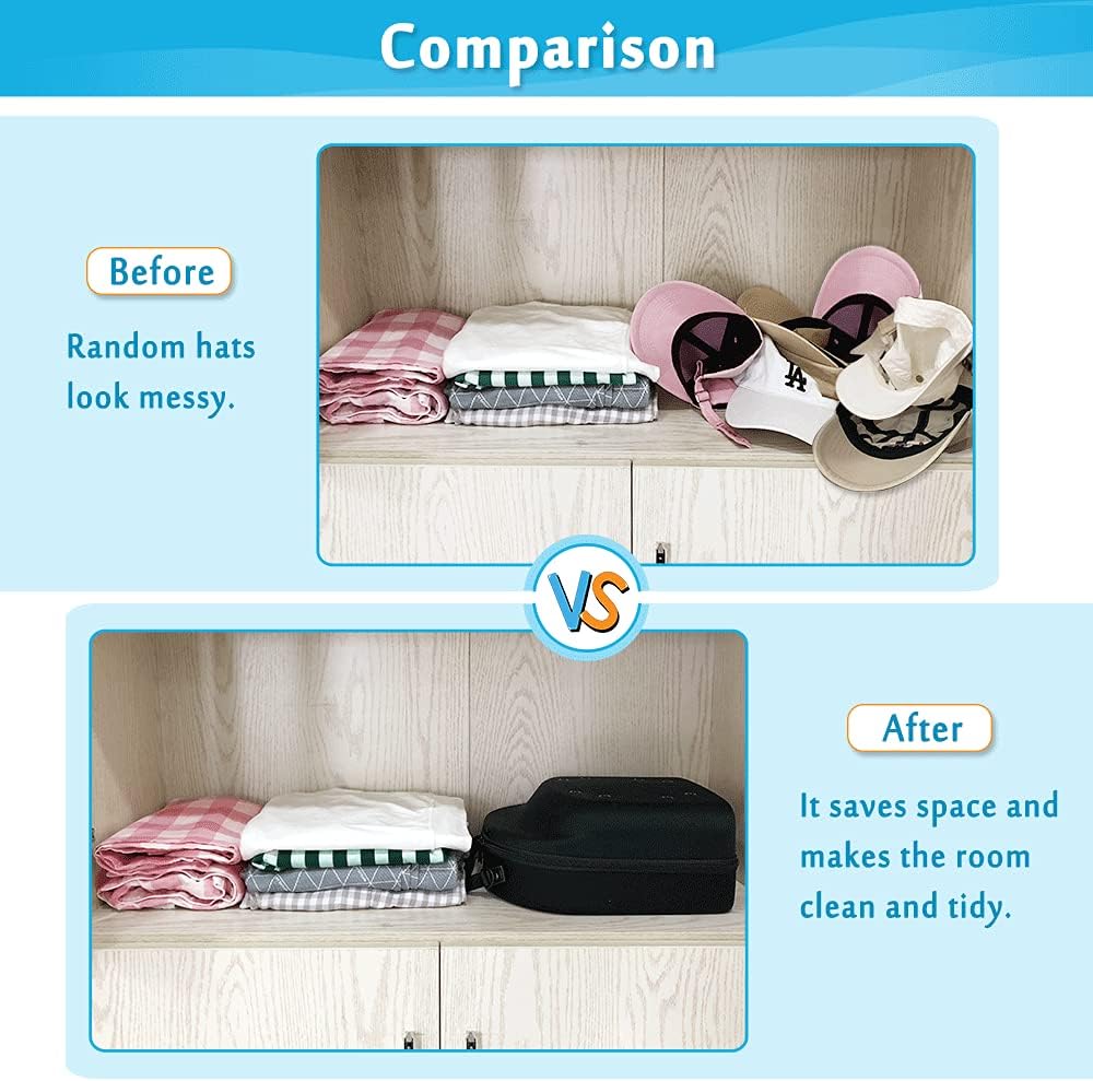 مواد عالية الجودة - منظم قبعات البيسبول مصنوع من مادة EVA الصلبة لضمان المتانة والراحة طويلة الأمد. الطبقة البينية (المادة الرئيسية): EVA، مادة الهيكل والبطانة: ألياف لدنة متعددة.