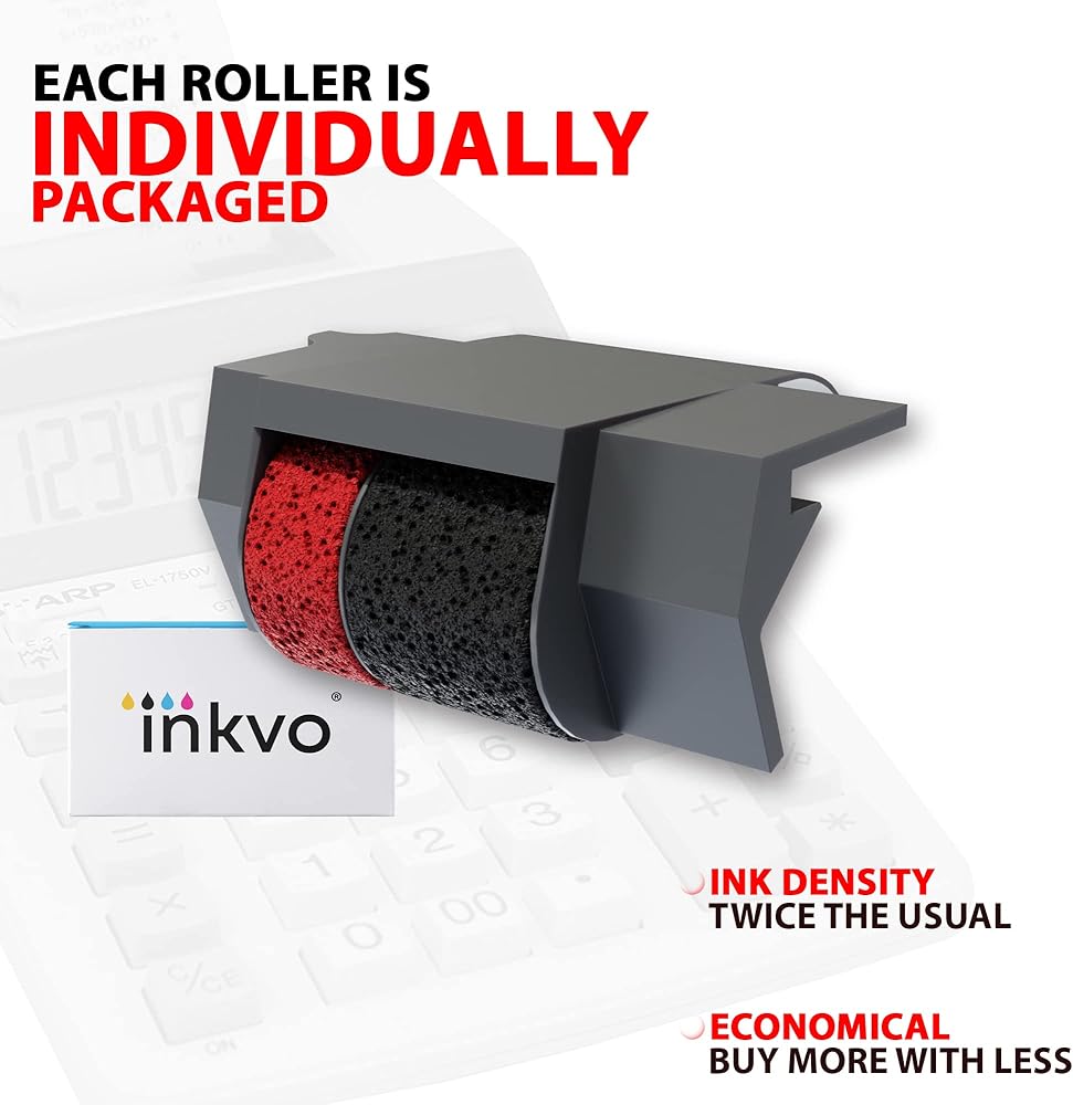 (3 عبوات) بكرة حبر بديلة متوافقة مع Inkvo باللونين الأحمر والأسود IR-40T لـ Sharp EL-1750V وEL-1801V وCasio HR-100TM وEA772R وغيرها الكثير