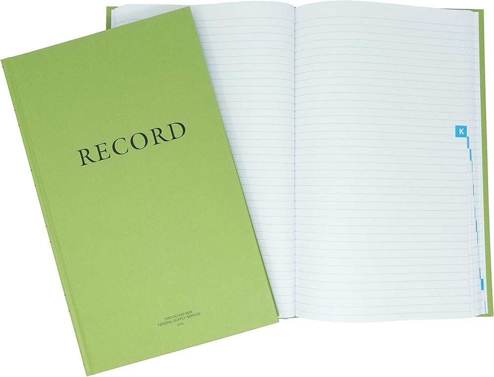 كتاب السجل العسكري الأخضر Tacticai، 8.5 بوصة × 14 بوصة - 288 صفحة، مفهرسة أبجديًا، دفتر سجل لحفظ السجلات، وسلسلة التوريد، والمخزون، والتدريب، والصيانة والعمليات الميدانية، NSN 7530-00-222-3524