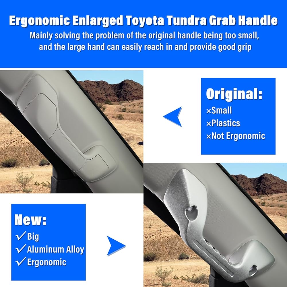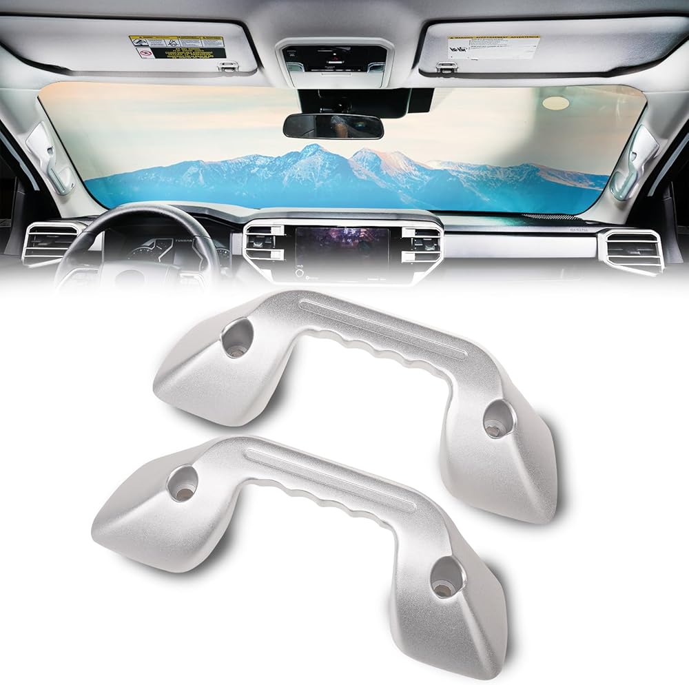 مقبض سحب السقف مقبض مخصص لتويوتا تندرا 2022 2023 2024 الملحقات الداخلية قبضة بيئة العمل من سبائك الألومنيوم الفضية، 2 حزمة (يسار ويمين)