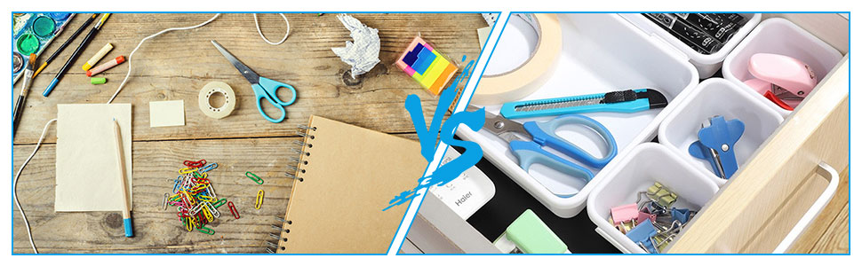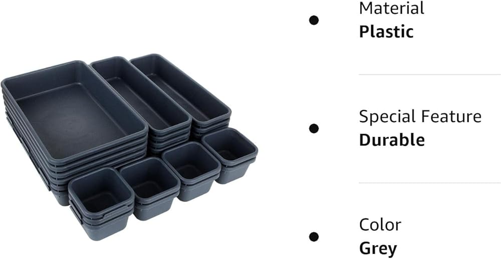 مصنوعة من البلاستيك القوي المتين، وغير قابل للانزلاق، ومضاد للخشخشة وسهل التنظيف بماء الصابون، وتخزن جميع مستلزماتك واحتمالاتها ونهاياتك بشكل أنيق، وتحافظ على أغراضك المستخدمة بشكل متكرر أنيقة ومنظمة وكلها في متناول اليد.