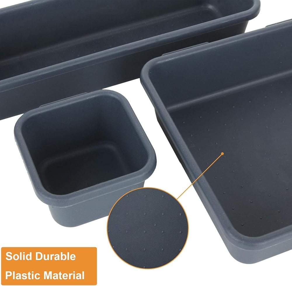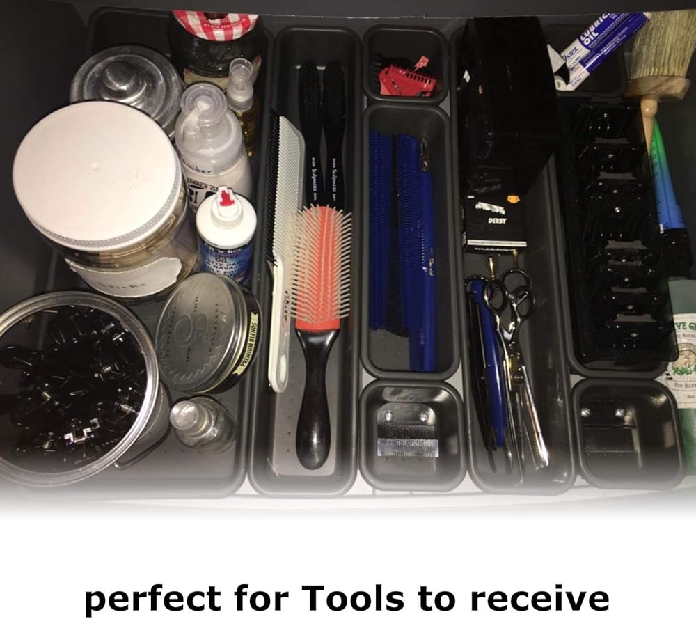 مثالية لخزانة الملابس / الحمام / المطبخ / أدراج المكتب، تنظيم مستحضرات التجميل، أدوات المكياج، إكسسوارات الشعر، طلاء الأظافر، المجوهرات، الخواتم، الأقراط، القلادة، الأساور، معجون الأسنان، فرش الشعر، أدوات الصيد، البطارية، شريط واشي، فنون الخياطة (الخيط) والبكرات والإبر) أو اللوازم المكتبية. صينية تنظيم الأدراج الأكبر حجمًا مناسبة لتخزين أدوات وأدوات المطبخ أو كمنظم لخزانة الأدوية الخاصة بك.
