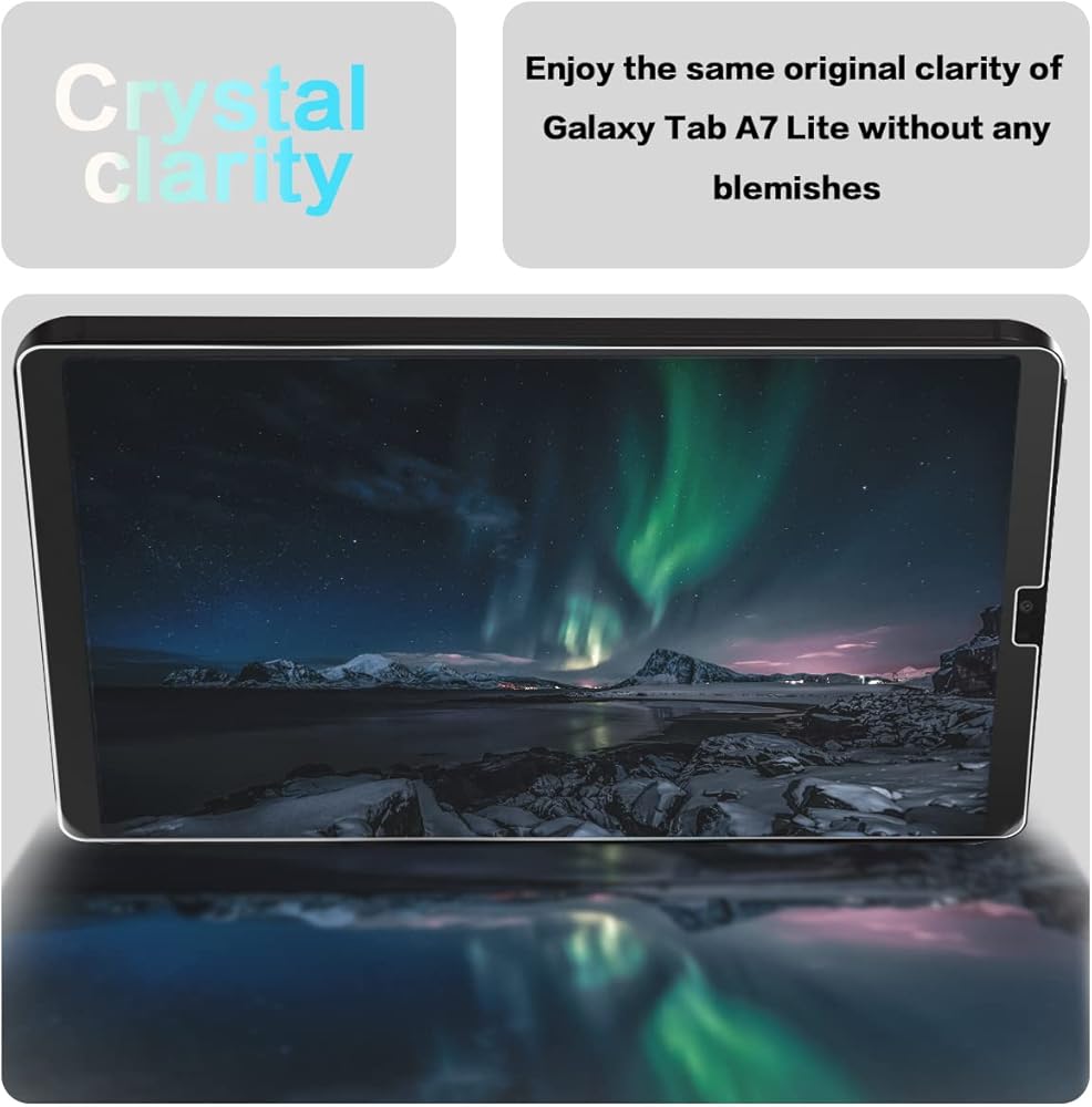 5.Package Includes: 3 pcs For Galaxy Tab A7 Lite T225 T220 Screen Protector,3 pairs Cleaning Wipes (wet and dry), 3 sets Dust absorber + Guide Stickers.