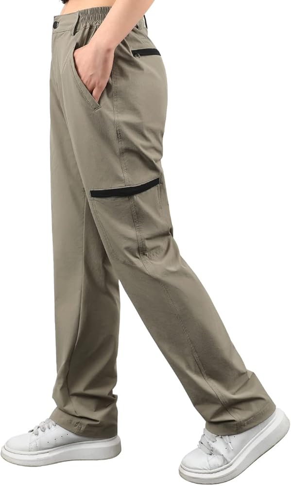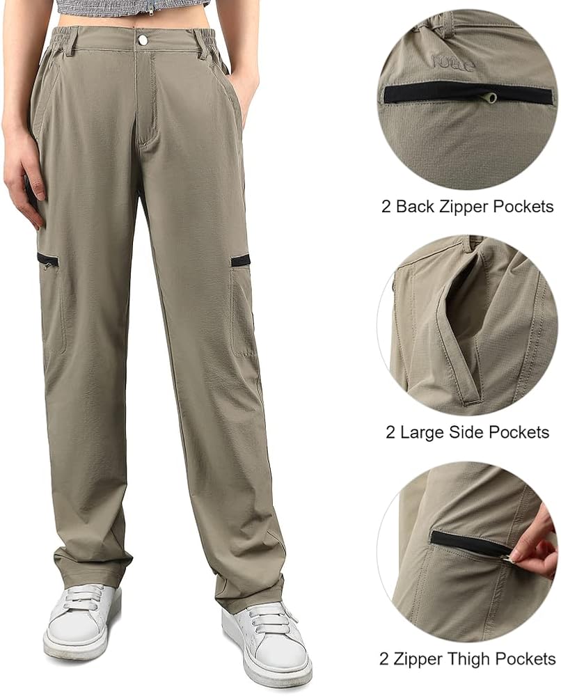 سراويل Nonwe النسائية للتنزه في الهواء الطلق مع جيوب، سراويل كارجو سريعة الجفاف للسيدات كاجوال