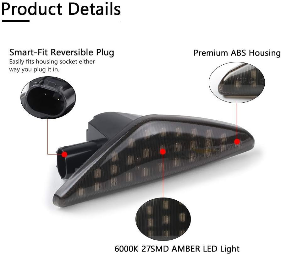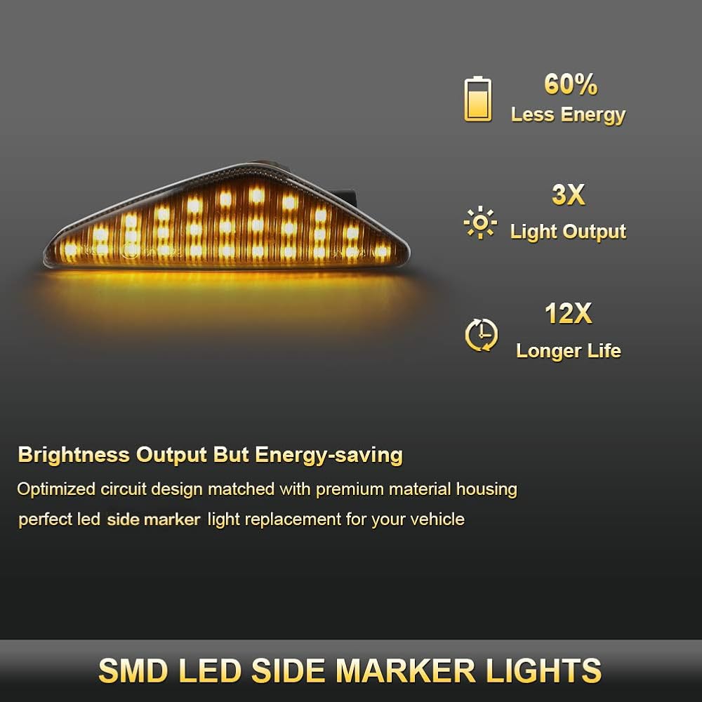 • سطوع عالي - كل مصباح تحديد جانبي مجهز برقائق 27SMD LED، مما يوفر إخراج إضاءة أكثر سطوعًا 3 مرات على الأقل من ضوء التحديد الجانبي OEM. توفير استهلاك الطاقة وعمر خدمة طويل