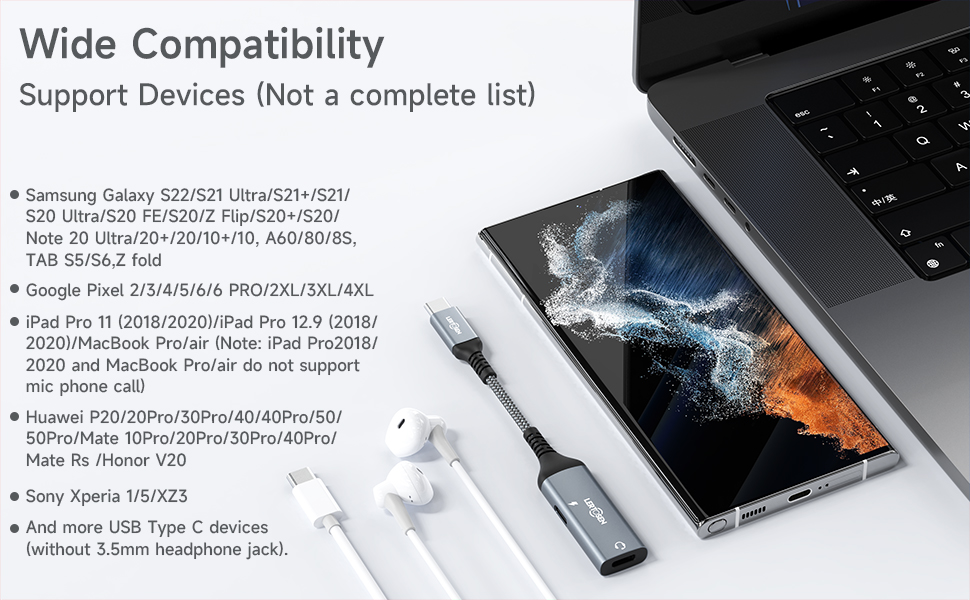 🎧【توافق واسع】يتوافق مقسم usb c مع معظم الهواتف من النوع c: Galaxy S22/S21 Ultra/S21+/S21/S20 Ultra/S20 FE/S20 Z Flip/S20+/S20، Note 20 Ultra/20+/ 20/10+/10، Pixel 2/3/4/5/6/6 PRO/2XL/3XL/4XL، iPad Pro، Huawei Mate 40 30 20 10 Pro، والمزيد من أجهزة USB-C. يمكنك الحصول على 1 × محول سماعة رأس وشاحن USB C مزدوج من LERTOSEN، 18 شهرًا بدون قلق، خدمة عملاء سهلة الاستجابة لمدة 12 ساعة. إذا واجهت أي مشكلة، يرجى الاتصال بنا وسنساعدك على التعامل معها في أسرع وقت ممكن.