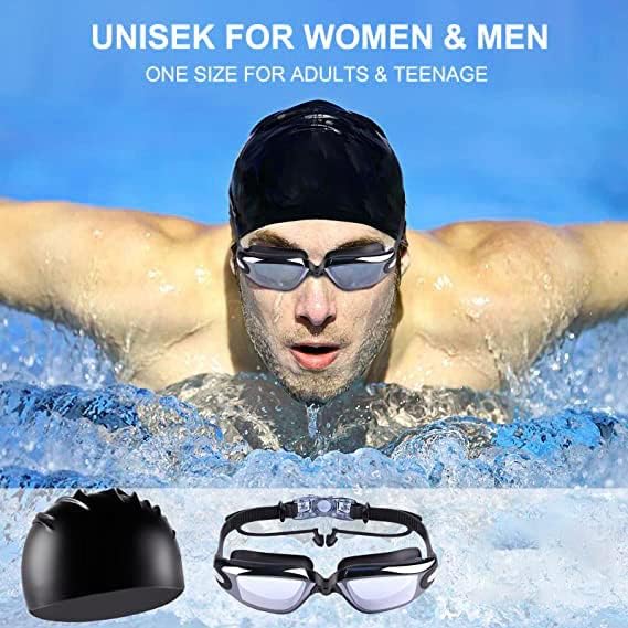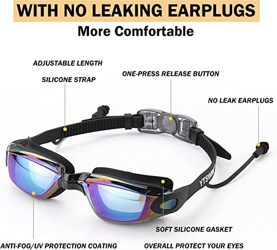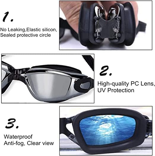 【6 نظارات سباحة تتميز كل منها بأنها مصنوعة لتلبية احتياجاتك】: باعتبارها أفضل مجموعة قبعة سباحة ونظارات سباحة، فهي تناسب جميع الأعمار الأطفال والبالغين، الرجال والنساء، والأولاد والبنات. خاصة بالنسبة لأولئك الذين لديهم شعر طويل، فقط استمتعوا بالسباحة مع خصلات آمنة وشعر خالٍ من التشابك. (1) وسائد سيليكون للراحة، (2) 100% من الأشعة فوق البنفسجية. الحماية، (3) طلاء مضاد للضباب، (4) عدسات مضادة للكسر، (5) طلاء مرآة، (6) حزام رأس قابل للتعديل.