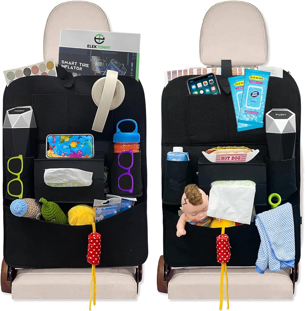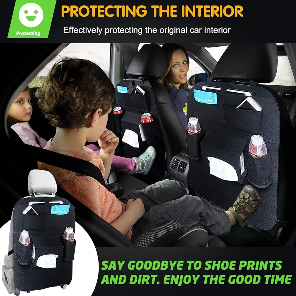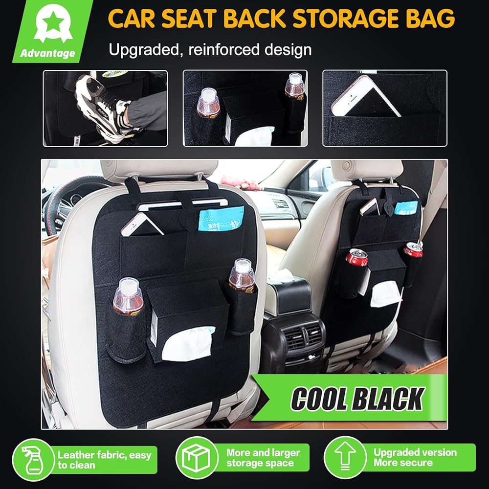 متعدد الاستخدامات ومتعدد الوظائف: منظم السيارة الخلفي هذا ليس للتخزين فقط؛ كما أنه يمكن استخدامه كواقي للمقعد، مما يحافظ على مقاعدك نظيفة وآمنة من الانسكابات والبقع والكشوط. إنه الإكسسوار المثالي لأي مالك سيارة يبحث عن الراحة والتنظيم أثناء التنقل.