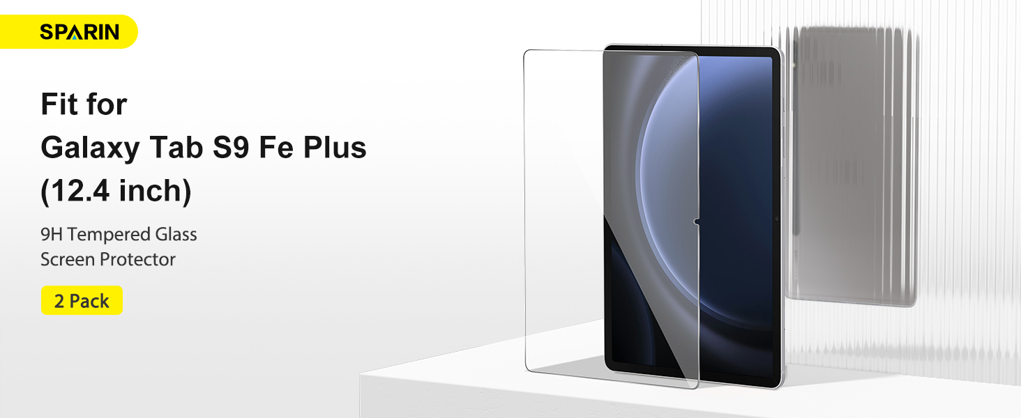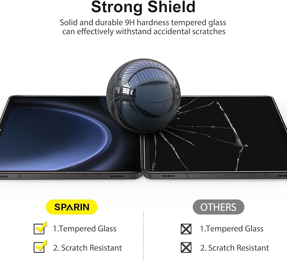 واقي شاشة SPARIN مكون من قطعتين لجهاز Samsung Galaxy Tab S9 FE Plus 12.4 بوصة، زجاج مقسى عالي الدقة لجهاز Samsung Tablet S9 FE Plus 2023، مضاد للخدش، حساس للمس