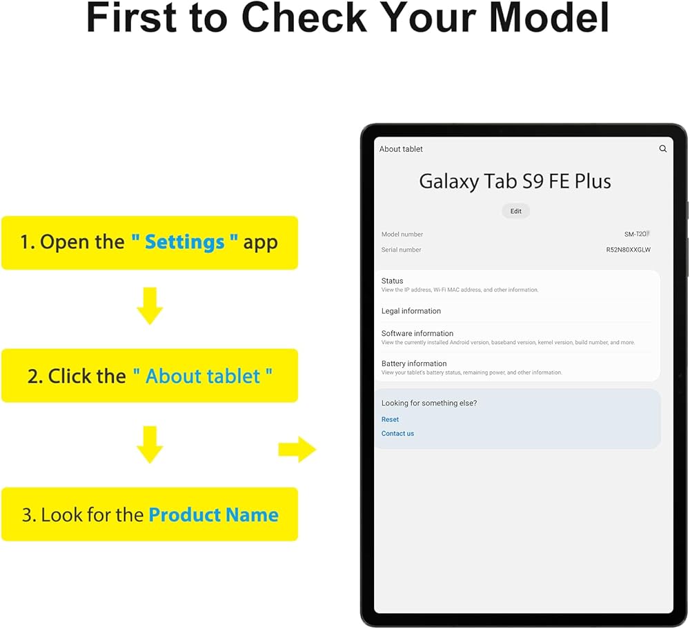 الملاءمة: يرجى التحقق من طراز جهازك اللوحي قبل الشراء لضمان التوافق مع جهاز Galaxy Tab S9 FE Plus مقاس 12.4 بوصة