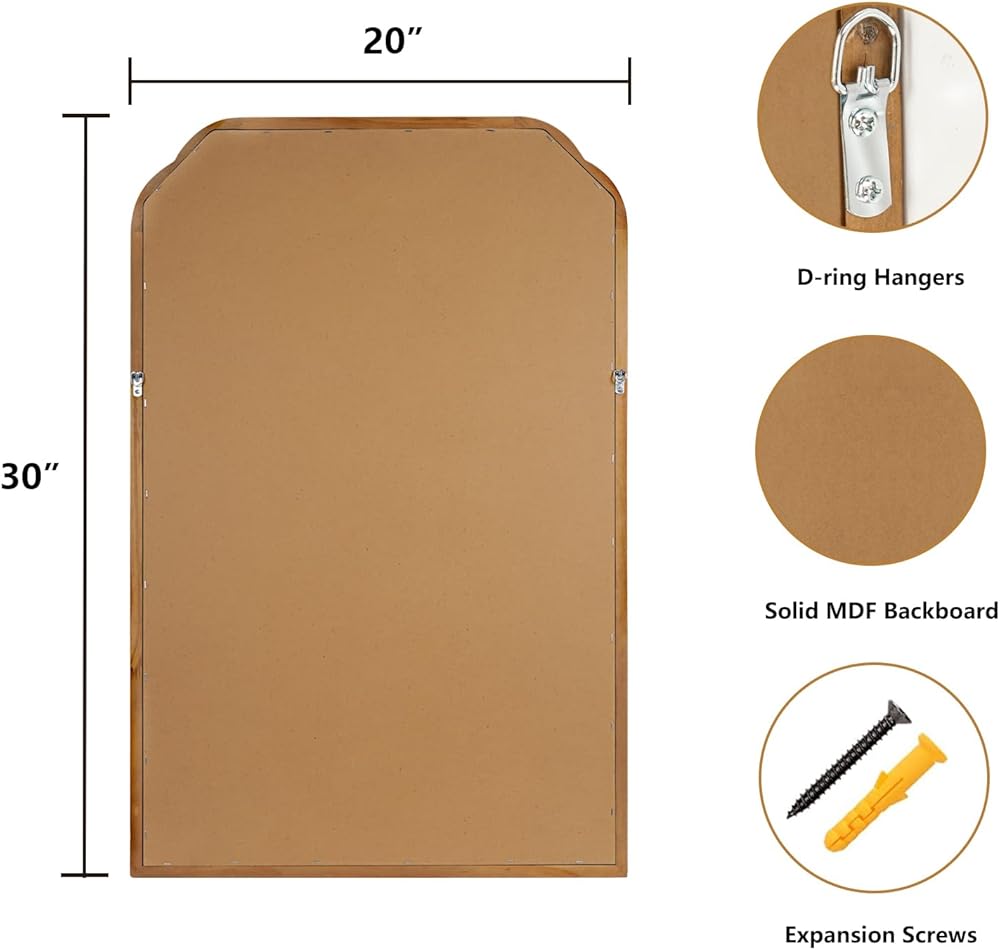 • سهلة التركيب: يحتوي الجزء الخلفي من مرآة الإطار على مشابك على شكل حرف D معززة، وقم بقياس المسافة بين مركز المشبكين الخلفيين، ثم استخدم مسطرة لرسم نفس المسافة على الحائط، واستخدم مثقاب لعمل فتحتين حيث سيتم تركيب الجهاز، وتثبيت المسمار في كل فتحة حتى يصبح رأس المسمار على بعد حوالي 0.2 بوصة من الحائط، وأخيرًا تأمين المرآة.